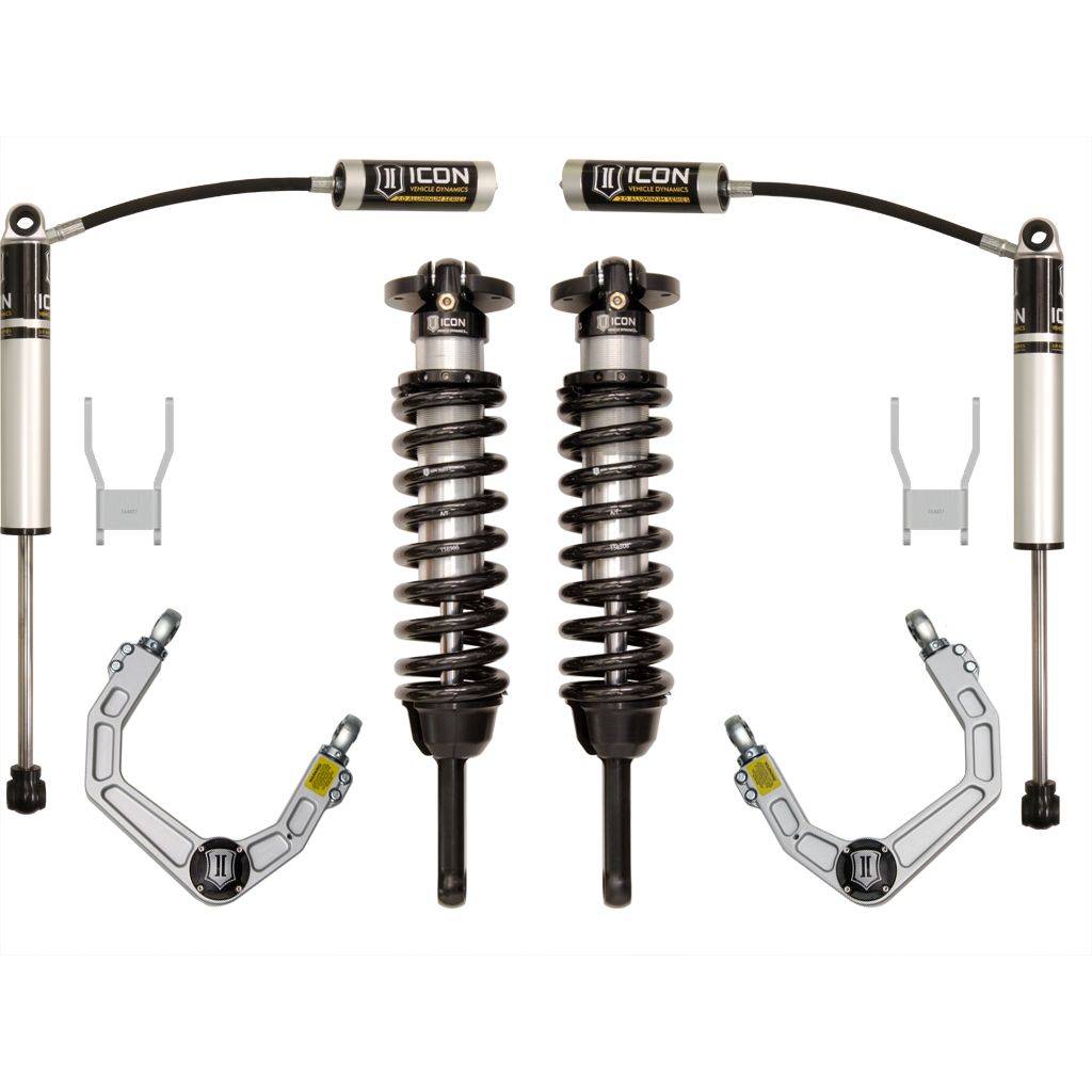 ICON Vehicle Dynamics’ Toyota Hilux suspension systems have been designed with maximum performance and the serious driver in mind. The varying uses of this vehicle worldwide were acknowledged and catered to in ICON’s research and development process. The Hilux Stage 3 system provides a level of performance that will drastically improve on and off-road vehicle ride characteristics. ICON's Vehicle-specific tuned 2.5” coilover shocks feature an internal reservoir for exceptional cooling properties, and ICON-engineered Eibach coil springs for superior vehicle “feel” throughout the range of travel. These 2.5" coilovers are height adjustable from 0-3” allowing the use of larger, more aggressive wheel and tire combinations when desired. ICON 2.0 Aluminum Series remote reservoir rear shocks balance performance of the truck front to rear, and ensure optimum performance by increasing the duration of consistent damping by keeping the shocks at a cooler operating temperature during extended off-road use. ICON has taken into account the stiffer chassis of the Hilux, realizing a much more robust overall shock tune was required for sufficient damping ability across varying terrains and differing vehicle payloads. By utilizing a shackle to lift the rear of the Hilux when the front is set to 3", factory payload rating is retained while allowing more suspension up-travel. Billet uniball upper control arms on the Hilux not only add strength and durability, but help retain factory alignment spec range allowing on vehicle adjustability. This attention to detail is why ICON Vehicle Dynamics performance suspension systems are the ultimate solution for the Toyota Hilux.