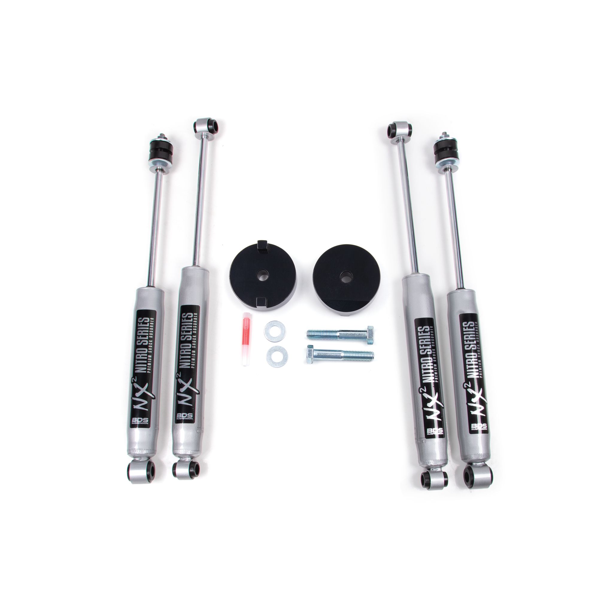 <p>Level the front of your 2005-2016 Ford F250 and F350 Super Duty truck by installing this 2-inch coil spacer leveling kit from BDS. Designed to improve stance this kit includes everything necessary to set your vehicle up right with clearance for up to 35" tires at an affordable price. The lift kit includes billet aluminum coil spacers and custom-tuned NX2 Nitro or FOX Performance series shocks.</p>