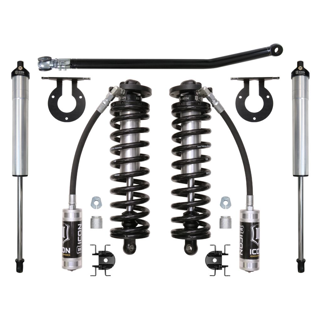ICON's 2.5 VS Series Remote Reservoir Bolt-In Coilover Conversion Kit will add a new level of performance and adjustability to 2005-2016 F-250 and F-350 trucks. The advantage of utilizing a coilover conversion kit is that they have been designed to increase the overall damping ability of the vehicle while at the same time allowing for user-defined ride height adjustment. The 2.5" Remote Reservoir Coilover featured in these kits is based off of ICON’s 2.5 VS Series shock line – meaning that features like Eibach coil springs, FK Rod End bearings, and vehicle-specific valving come standard. Quality machined components and a fully serviceable design make for a product that will stand the test of time, yet retain the ability to be rebuilt or re-valved as necessary.