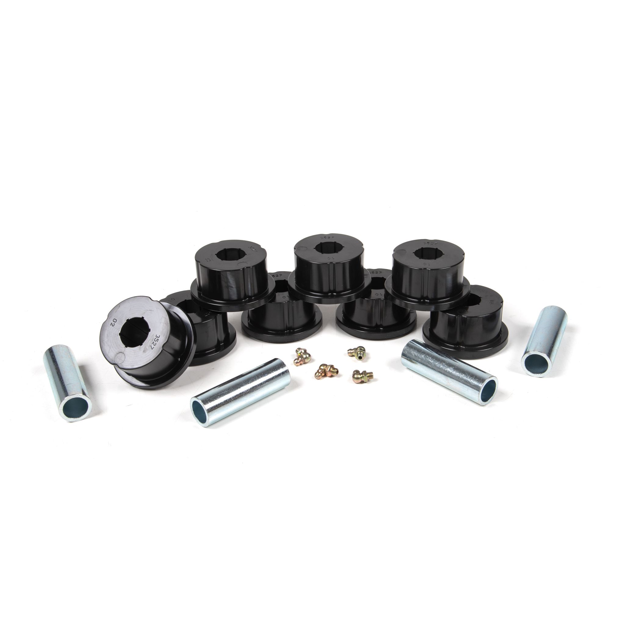 <p>This replacement bushing kit is designed for the BDS 2005-2019 Ford F250 or F350 Super Duty 4-Link control arms. These polyurethane bushings are fluted for even distribution and include the sleeves to freshen up your Ford when and if the time ever comes. Kit includes 8 bushing halves and 4 sleeves for quick and easy installation.</p>