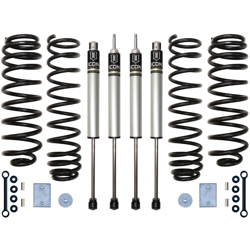 The ICON Vehicle Dynamics 3" Lift Suspension System is designed for Jeep JK owner's demanding the ultimate in performance and ride quality, without the larger stance you find in bigger lift systems on today's market. ICON's Jeep Wrangler JK 3" lift system is engineered with front and rear dual rate progressive wound springs which is the foundation for on and off road performance and suspension articulation. The dual rate design gives you a softer initial rate for superb on road comfort and a firmer secondary rate that increases during compression for excellent bottom out control. ICON V.S. 2.0 Aluminum Series shocks add the finishing touch with OE mounting, aircraft grade components, and vehicle specific valving. Together the combination of ICON dual rate coils and V.S. 2.0 Aluminum Series shocks adds 30% more wheel travel over stock, helping you rock crawl safer or soak up larger terrain at higher speeds keeping those wheels on the ground. This ICON 3" JK lift system is designed from the ground up to give the 07-18 Jeep Wrangler JK's the best performance, suspension handling / ride quality, and clearance for 33" tall tires (35" tall with installation of aftermarket high-clearance fenders).