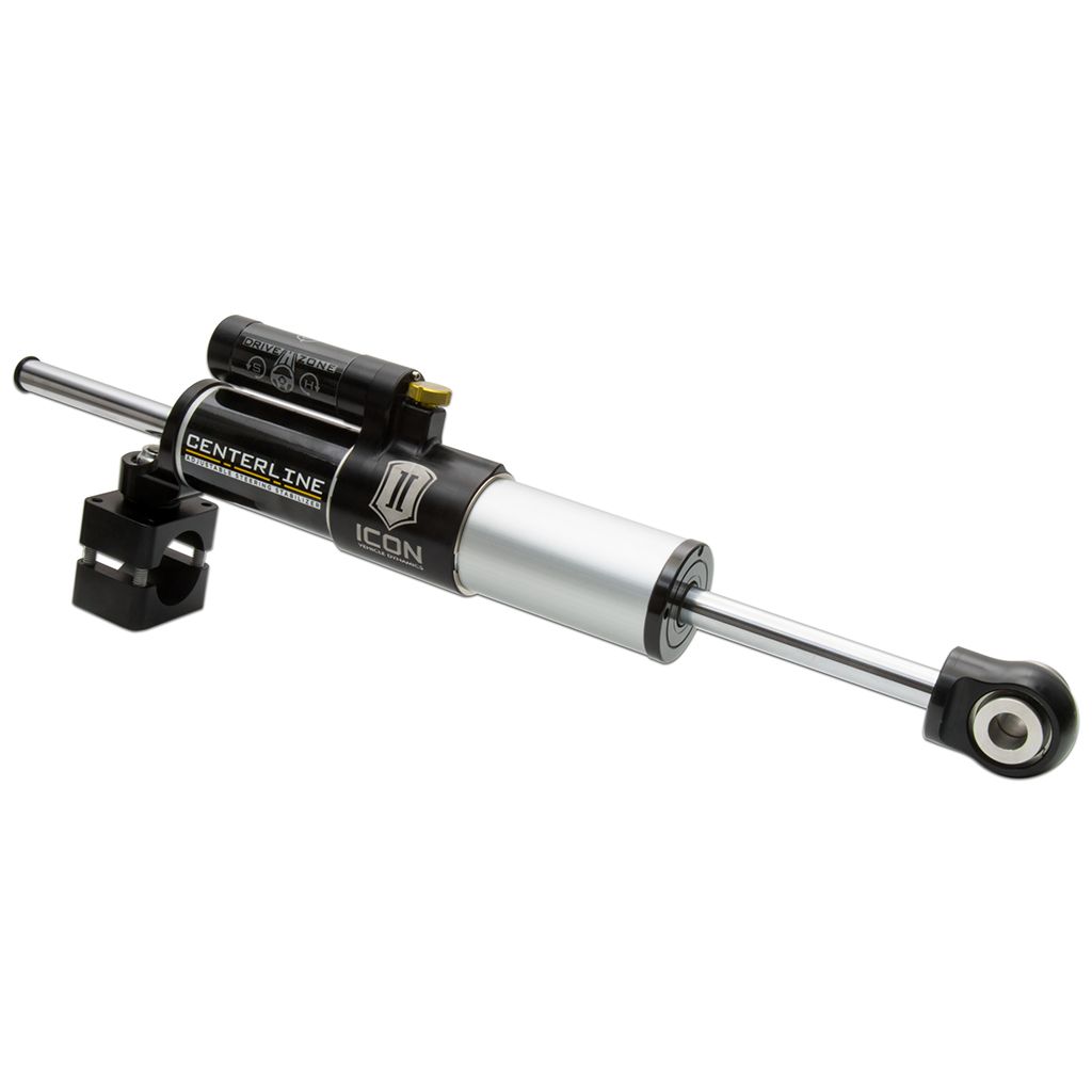 This new Centerline Steering Stabilizer shares the same great build features as our proven ICON 2.0 Aluminum Series shocks. These features include a clear anodized 6063 aluminum shock body for corrosion resistance and a 5/8” chrome plated hardened steel shaft for durability, premium 5WT shock oil that provides consistent damping characteristics across a wide operating temperature range , and a high temperature long wear seal pack that stands up to harsh conditions found both on and off-road. The CNC machined billet aluminum Centerline Stabilizer 1-3/8” tie rod clamp and rod end also feature FK Rod End bearings for precise and reliable operation.