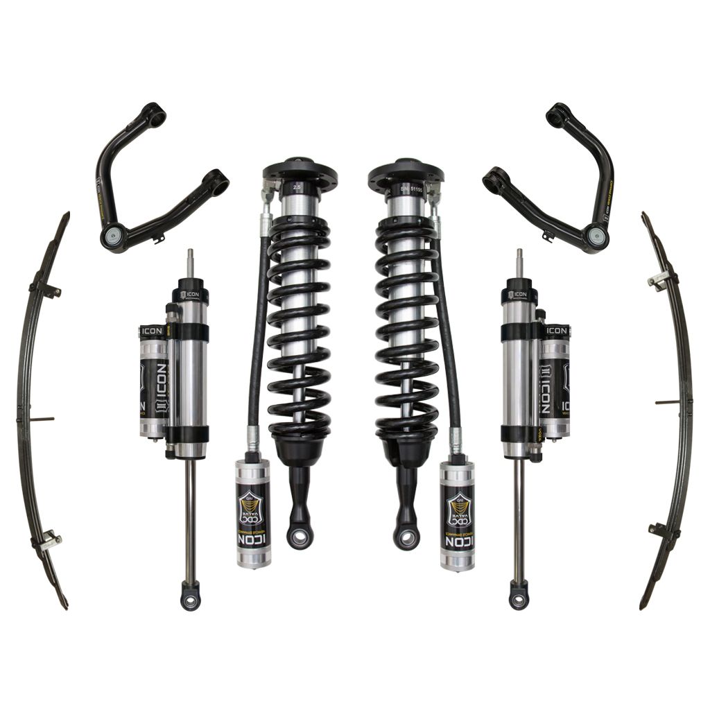 This system features upper control arms with ICON's patented Delta Joint. The Delta Joint is a heavy-duty high angle ball joint that combines the durability of a ball joint with the performance characteristics of a traditional uniball. While the industry standard uniball does a great job of allowing the control arms of a vehicle to articulate with little bind, they do have an inherent weakness that leaves more to be desired when used in a daily driven application – exposure to the elements. The Delta Joint features a zinc plated housing providing the first layer of corrosion resistance, while a tough grease seal keeps potentially harmful elements out of the inner workings of the joint. Metal on metal construction and a greaseable design increase the longevity of the Delta Joint while at the same time allowing for noise-free operation. What makes the Delta Joint unique is that it brings the best of both worlds to ICON upper control arms with features that make it more robust than a uniball, and at the same time capable of greater angularity than a typical ball joint.