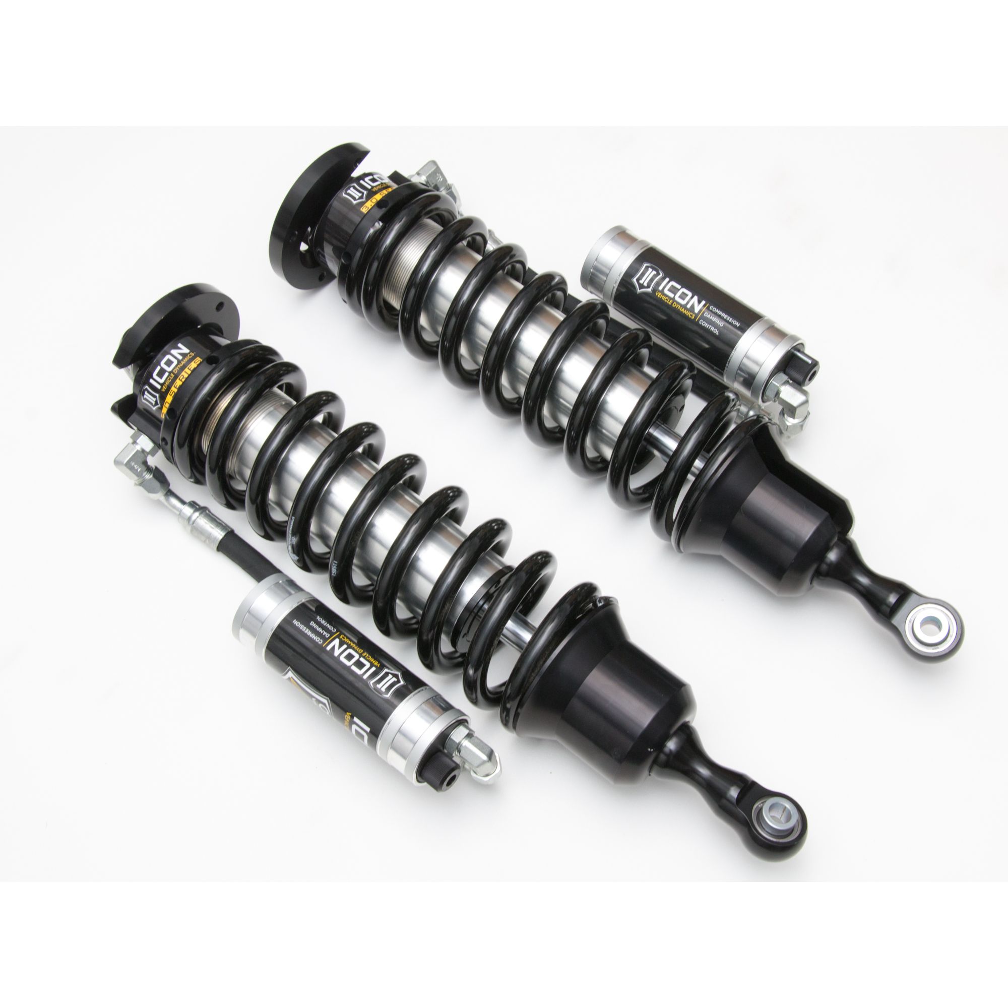 These 3.0 Series coilovers were designed as an OEM shock replacement, making install a simple and straightforward bolt-on affair. Built in ride height adjustability yields 2.25-3.5” of front lift height allowing for the fitment of larger, more aggressive wheel and tire combinations. First class ICON manufacturing processes and quality components such as Eibach coil springs and FK Rod End bearings are used to ensure these shocks function to their maximum potential without issue.