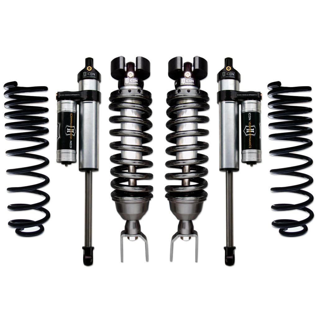 ICON Vehicle Dynamics Dodge Ram 1500 4WD suspension systems are designed with maximum performance and the serious driver in mind. ICON engineers’ primary focus is to increase wheel travel and damping ability, which translates into outstanding vehicle control and ride quality both on and off-road. The Stage 3 system includes vehicle-specific tuned 2.5” coilover shocks featuring internal reservoirs for exceptional cooling properties and ICON-engineered Eibach coil springs for superior vehicle “feel” through the range of travel. These coilovers are also height adjustable from .75-2.5” of lift over stock, allowing the use of larger, more aggressive wheel and tire combinations. ICON 2.5 Aluminum Series piggyback reservoir rear shocks utilize a vehicle-specific valving that balances the performance of the truck from front to rear. The ICON Vehicle Dynamics 2009-2018 Dodge Ram 1500 4WD Stage 3 suspension system is an excellent choice for those drivers looking to enhance the capabilities of their pickup on the road as well as in the dirt.