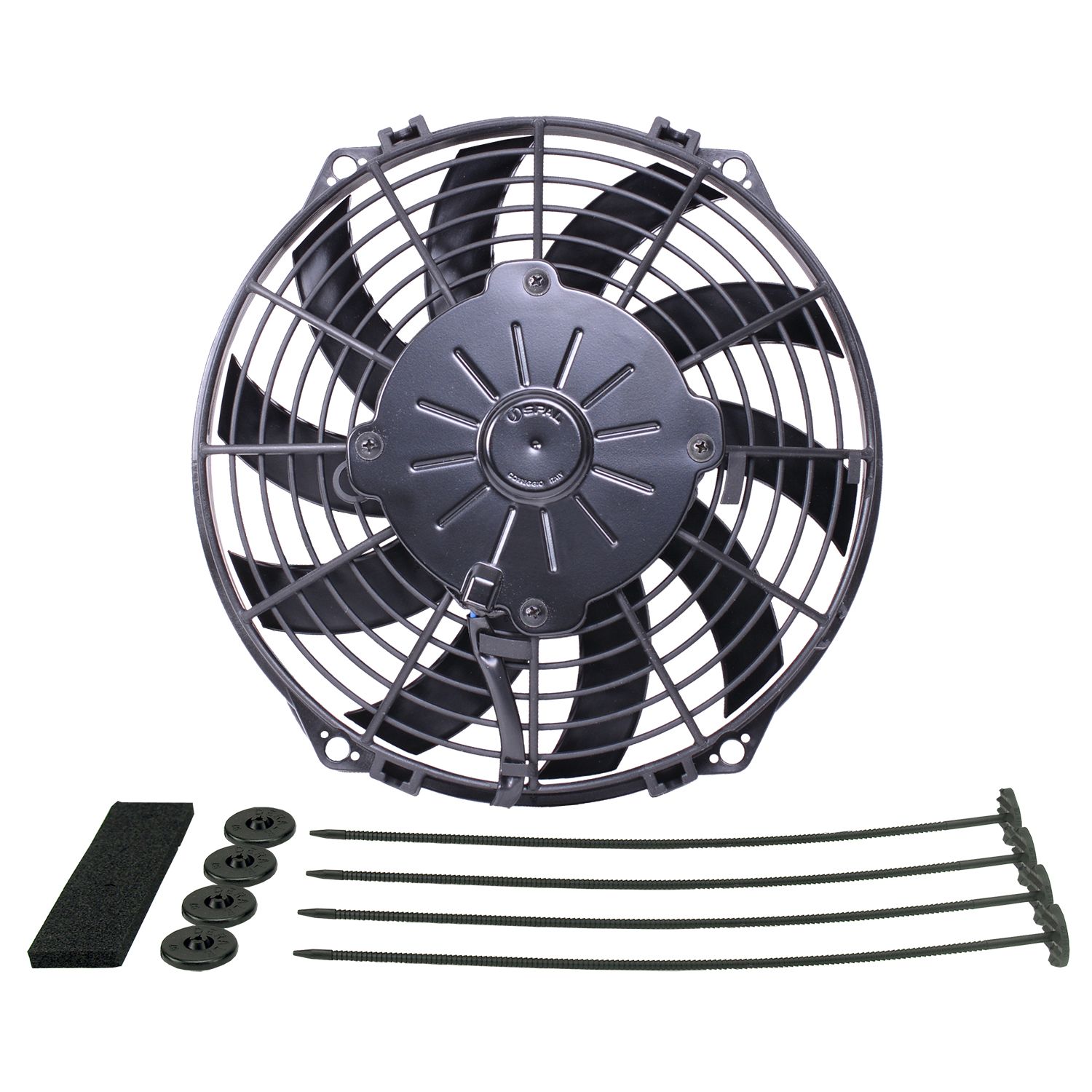 A 9" Diameter version of our high performance H.O. Extreme series of electric fans, this powerful unit uses 10 thin, curved blades to provide a low profile (only 2" at widest point) for limited space applications. Using a sealed waterproof/dustproof motor that lasts up to 3 times longer than normal electric fan motors, this puller fan is designed to provide maximum performance at high static pressure loads. Mounting kit and installation instructions included.