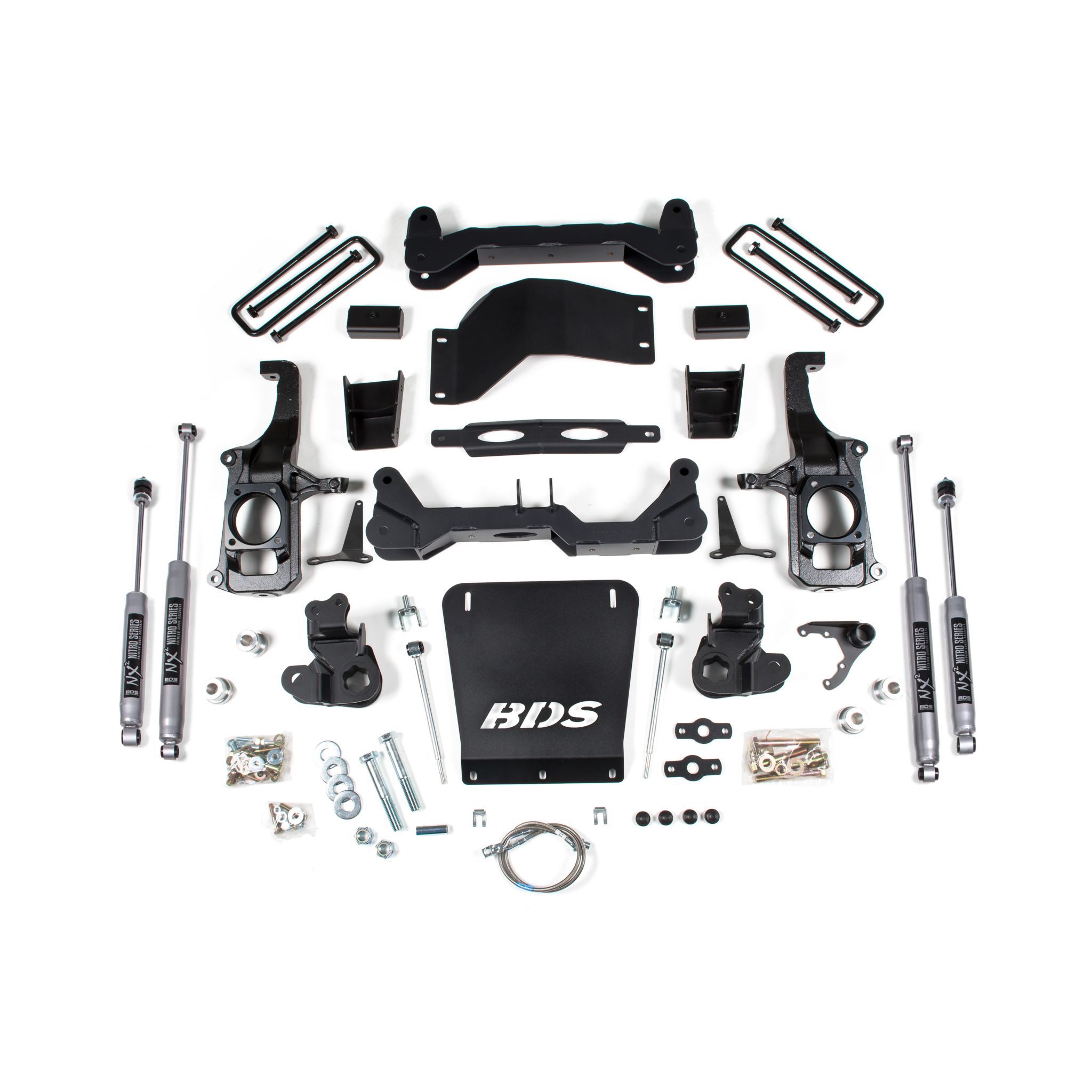 <p>Improve the stance, performance, and capability of your 2011-2019 Chevy Silverado and GMC Sierra 2500 HD 4WD with a BDS 4.5-inch lift kit. For maximum ground clearance, BDS designed a No Torsion Bar Drop System where the torsion bars are mounted directly to the top of the lower a-arm eliminating the need to drop the torsion bar cross-member. This kit includes everything necessary to set your truck up right with clearance for up to 35" tires.</p>