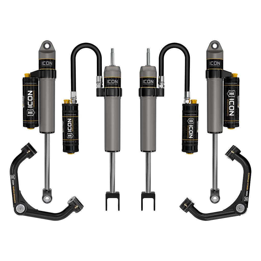 This system features upper control arms with ICON's patented Delta Joint. The Delta Joint is a heavy duty high angle ball joint that combines the durability of a ball joint with the performance characteristics of a traditional uniball. While the industry standard uniball does a great job of allowing the control arms of a vehicle to articulate with little bind, they do have an inherent weakness that leaves more to be desired when used in a daily driven application – exposure to the elements. The Delta Joint features a zinc plated housing providing the first layer of corrosion resistance, while a tough grease seal keeps potentially harmful elements out of the inner workings of the joint. Metal on metal construction and a greasable design increase the longevity of the Delta Joint while at the same time allowing for noise-free operation. What makes the Delta Joint unique is that it brings the best of both worlds to ICON upper control arms with features that make it more robust than a uniball, and at the same time capable of greater angularity than a typical ball joint.