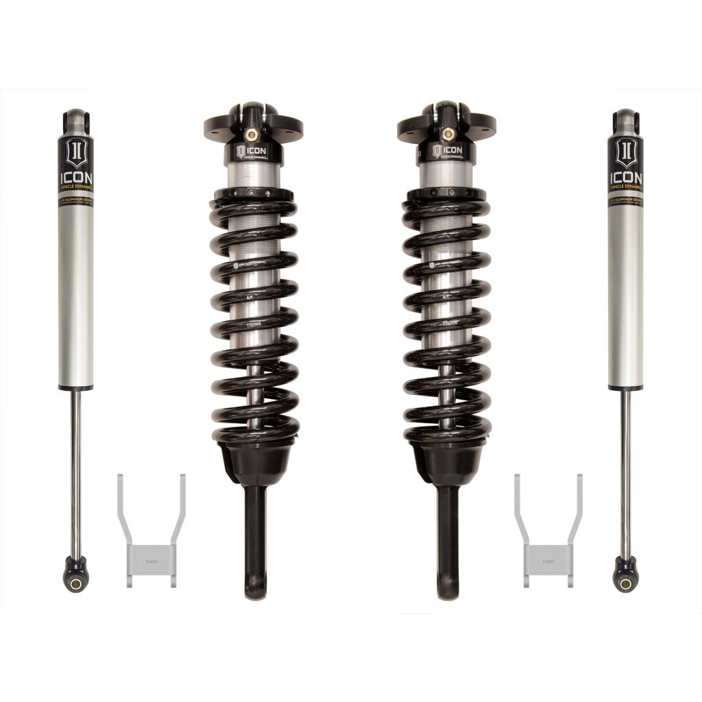 ICON Vehicle Dynamics’ Toyota Hilux suspension systems have been designed with maximum performance and the serious driver in mind. The varying uses of this vehicle worldwide were acknowledged and catered to in ICON’s research and development process. The Hilux Stage 2 system provides a level of performance that will drastically improve on and off-road vehicle ride characteristics. ICON's Vehicle-specific tuned 2.5” coilover shocks feature an internal reservoir for exceptional cooling properties, and ICON-engineered Eibach coil springs for superior vehicle “feel” throughout the range of travel. These 2.5" coilovers are height adjustable from 0-3” allowing the use of larger, more aggressive wheel and tire combinations when desired. ICON 2.0 Aluminum Series monotube rear shocks balance performance of the truck front to rear for a great all-around feel on any terrain. ICON has taken into account the stiffer chassis of the Hilux, realizing a much more robust overall shock tune was required for sufficient damping ability across varying terrains and differing vehicle payloads. By utilizing a shackle to lift the rear of the Hilux when the front is set to 3", factory payload rating is retained while allowing more suspension up-travel. This attention to detail is why ICON Vehicle Dynamics performance suspension systems are the ultimate solution for the Toyota Hilux.