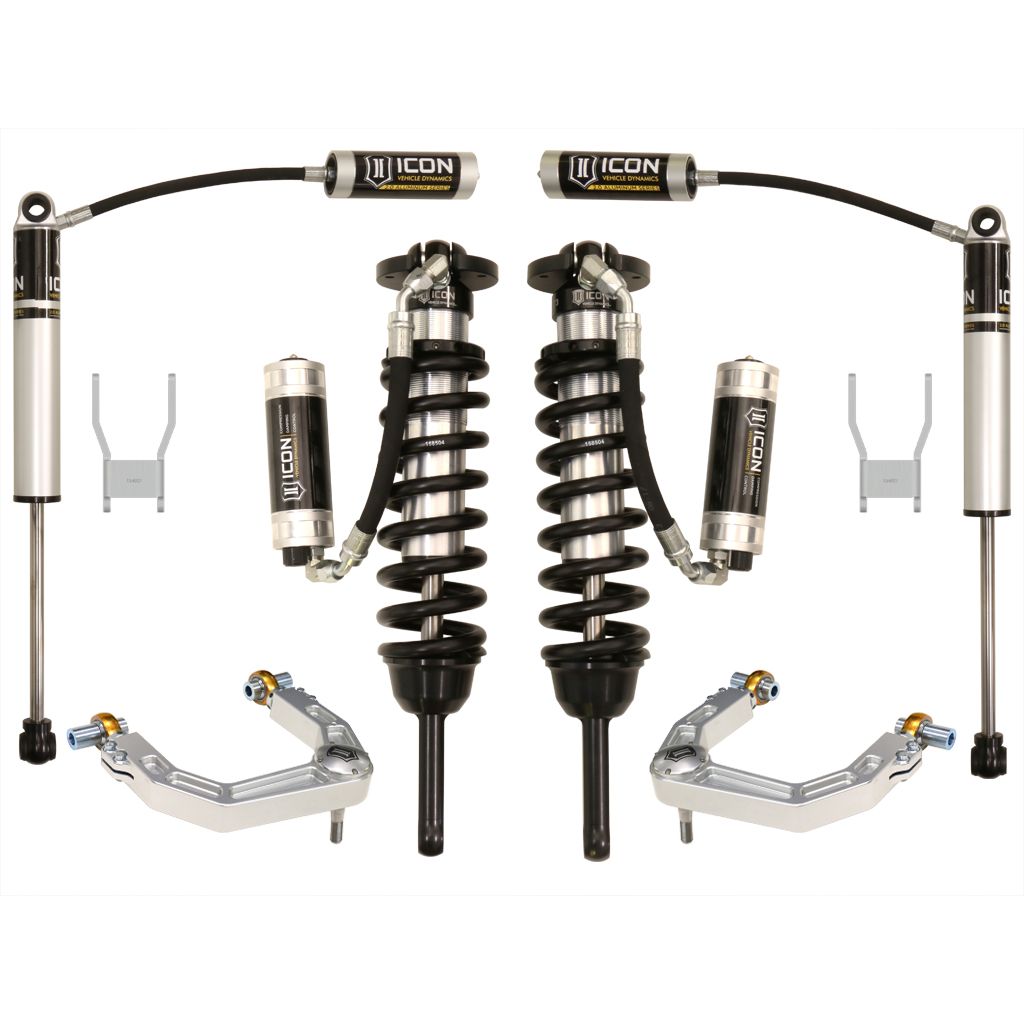ICON Vehicle Dynamics’ Toyota Hilux suspension systems have been designed with maximum performance and the serious driver in mind. The varying uses of this vehicle worldwide were acknowledged and catered to in ICON’s research and development process. The Hilux Stage 5 system provides a level of performance that will drastically improve on and off-road vehicle ride characteristics. ICON's Vehicle-specific tuned 2.5” remote reservoir w/ CDCV coilover shocks and ICON 2.0 Aluminum Series in this system provide exceptional cooling properties, with the coilovers utilizing ICON-engineered Eibach coil springs for superior vehicle “feel” throughout the range of travel. Remote reservoirs front and rear ensure optimum performance by increasing the duration of consistent damping, keeping the shocks at a cooler operating temperature during extended off-road use. These 2.5" remote reservoir w/ CDCV coilovers are also height adjustable from 0-3” allowing the use of larger, more aggressive wheel and tire combinations when desired. ICON has taken into account the stiffer chassis of the Hilux, realizing a much more robust overall shock tune was required for sufficient damping ability across varying terrains and differing vehicle payloads. By using a shackle to lift the rear of the Hilux when the front is set to 3", factory payload rating is retained while allowing more suspension up-travel. Billet uniball upper control arms on the Hilux not only add strength and durability, but help retain factory alignment spec range allowing on vehicle adjustability. This attention to detail is why ICON Vehicle Dynamics performance suspension systems are the ultimate solution for the Toyota Hilux.