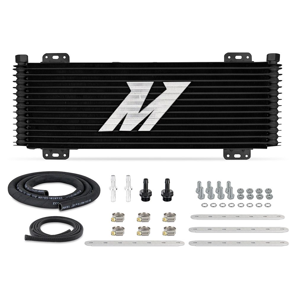 TechSpec Includes: 13-Row Stacked Plate Transmission Cooler–Universal Mounting Brackets–3/8-in Hose Barb Male to Male Adapter–3/4-16 Male to 3/8-in Barb Fittings–3/8-in ID SAE J1532 Transmission Oil Cooler Hose, 50-in Long–3/8-in Hose Protection Sleeve, 50-in Long–Hose Connection Shrink Wrap–Worm-Gear Clamps–Mounting hardware–Mishimoto Lifetime Warranty