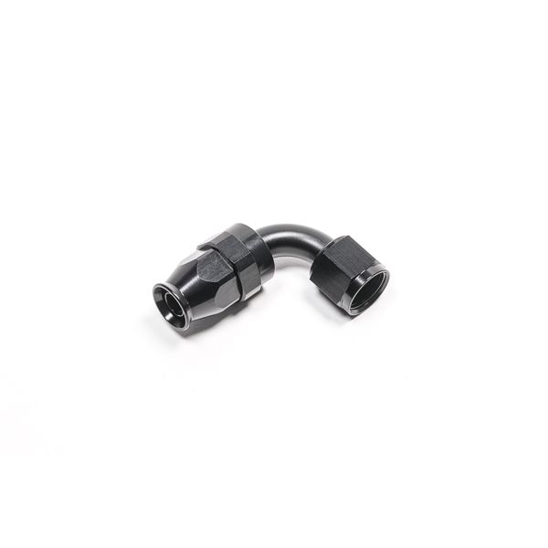 Wrench-together 8AN 90-degree hose end for use with Radium universal PTFE Hose Kits.