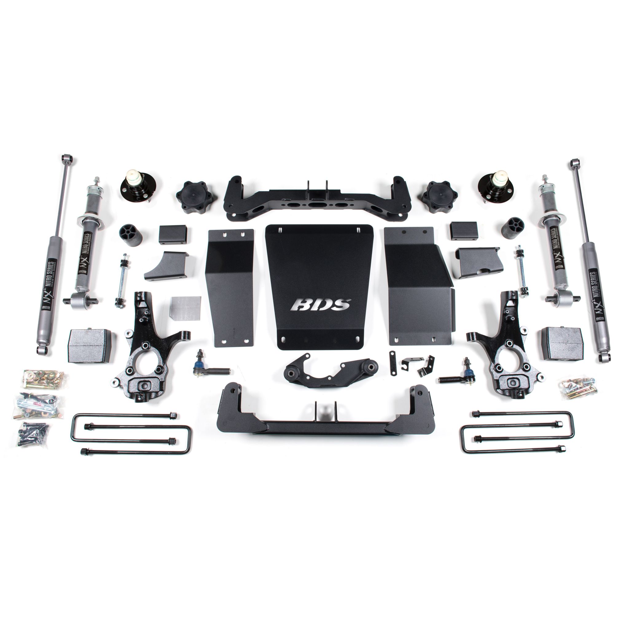 <p>The BDS 6-inch lift kit is an amazing upgrade for your 2014-2018 Chevy Silverado and GMC Sierra 1500 that will leave others in envy. Designed to improve stance, performance, and capability, this kit includes everything necessary to set your truck up right with clearance for up to 35" tires</p>