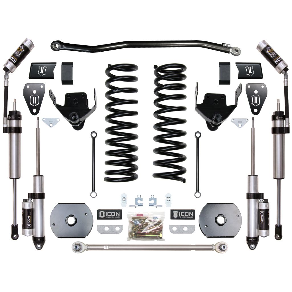 ICON Vehicle Dynamics suspension systems for the 2014-2018 Ram 2500 4WD were designed with exceptional performance and ride quality in mind. This Stage 3 system includes ICON-engineered 4.5” dual rate coil springs, high-strength laser cut bracketry, billet bump stop spacers, fabricated rear coil spacers, and all hardware necessary for a complete install. Vehicle-specific ICON 2.5 Aluminum Series remote reservoir shocks help deliver balanced performance front to rear, while CDC (Compression Damping Control) Valve technology allows the user to adjust compression characteristics of the shocks with the turn of a knob. These features make this Stage 3 system a huge upgrade for 2014-2018 Ram 2500 4WD trucks that are not only used for daily driving and towing, but spirited off-road driving as well.