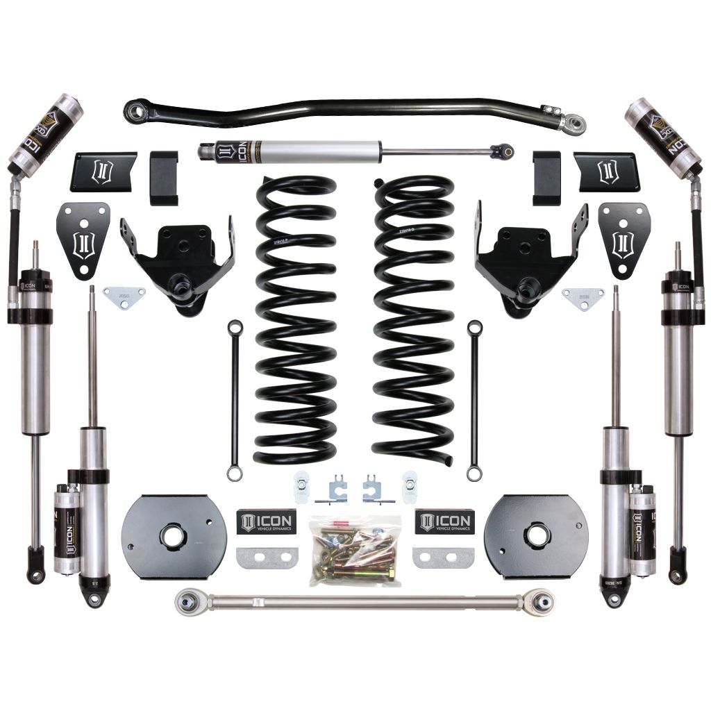 ICON Vehicle Dynamics suspension systems for the 2014-2018 Ram 2500 4WD were designed with exceptional performance and ride quality in mind. This Stage 4 system includes ICON-engineered 4.5” dual rate coil springs, high-strength laser cut bracketry, billet bump stop spacers, fabricated rear coil spacers, and all hardware necessary for a complete install. Vehicle-specific ICON 2.5 Aluminum Series remote reservoir shocks help deliver balanced performance front to rear, while CDC (Compression Damping Control) Valve technology allows the user to adjust compression characteristics of the shocks with the turn of a knob. These features make this Stage 4 system a huge upgrade for 2014-2018 Ram 2500 4WD trucks that are in need of a comfortable on-road ride, but also require the ability to be used to their full potential during spirited off-road driving.