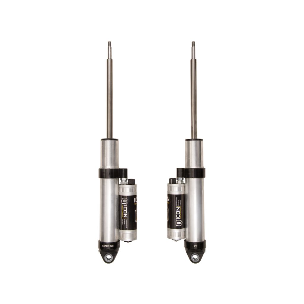 ICON Vehicle Specific (V.S.) 2.5 Aluminum Series shocks are designed and built to give your vehicle outstanding performance off-road and a smooth ride on the street. These shocks are configured specifically for each application in both length and damping tune. Like all ICON'S Shock Absorbers, V.S. 2.5 Aluminum Series shocks are 100% rebuildable and 100% revalveable. For piggyback and specific remote reservoir applications, ICON'S unique use of a 6061 billet aluminum manifold a few inches below the top cap of the shock creates an internal Bump Zone that when used creates an additional 20% of damping force. This additional force helps prevent harsh bottom outs and controls the suspension when compressing at high velocity. The ICON CDC Valve is an externally adjustable valve that restricts oil flow into the reservoir which creates 10 levels of compression damping force ranges.