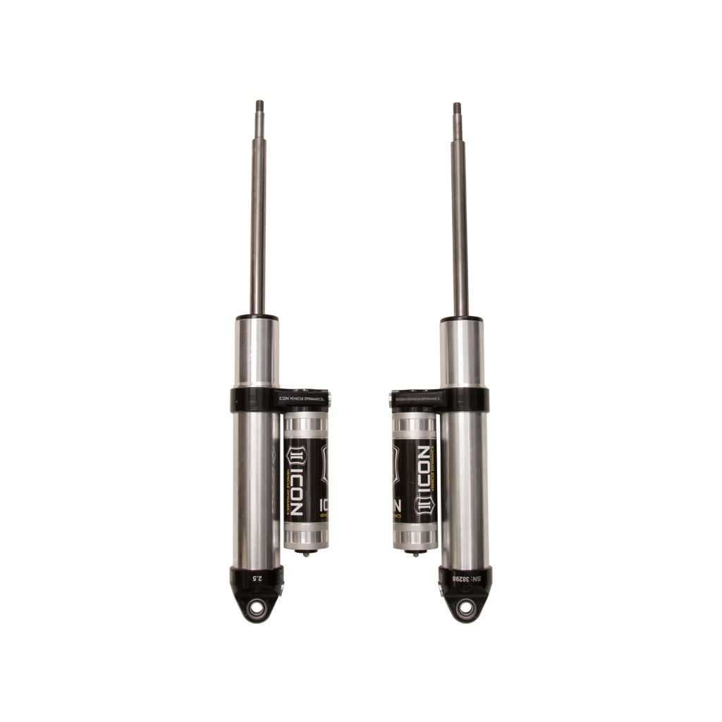 ICON Vehicle Specific (V.S.) 2.5 Aluminum Series shocks are designed and built to give your vehicle outstanding performance off-road and a smooth ride on the street. These shocks are configured specifically for each application in both length and damping tune. Like all ICON'S Shock Absorbers, V.S. 2.5 Aluminum Series shocks are 100% rebuildable and 100% revalveable. For piggyback and specific remote reservoir applications, ICON'S unique use of a 6061 billet aluminum manifold a few inches below the top cap of the shock creates an internal Bump Zone that when used creates an additional 20% of damping force. This additional force helps prevent harsh bottom outs and controls the suspension when compressing at high velocity. If you are looking for a more user defined tune, consider looking into the Compression Damping Control Valve (CDCV) shocks.