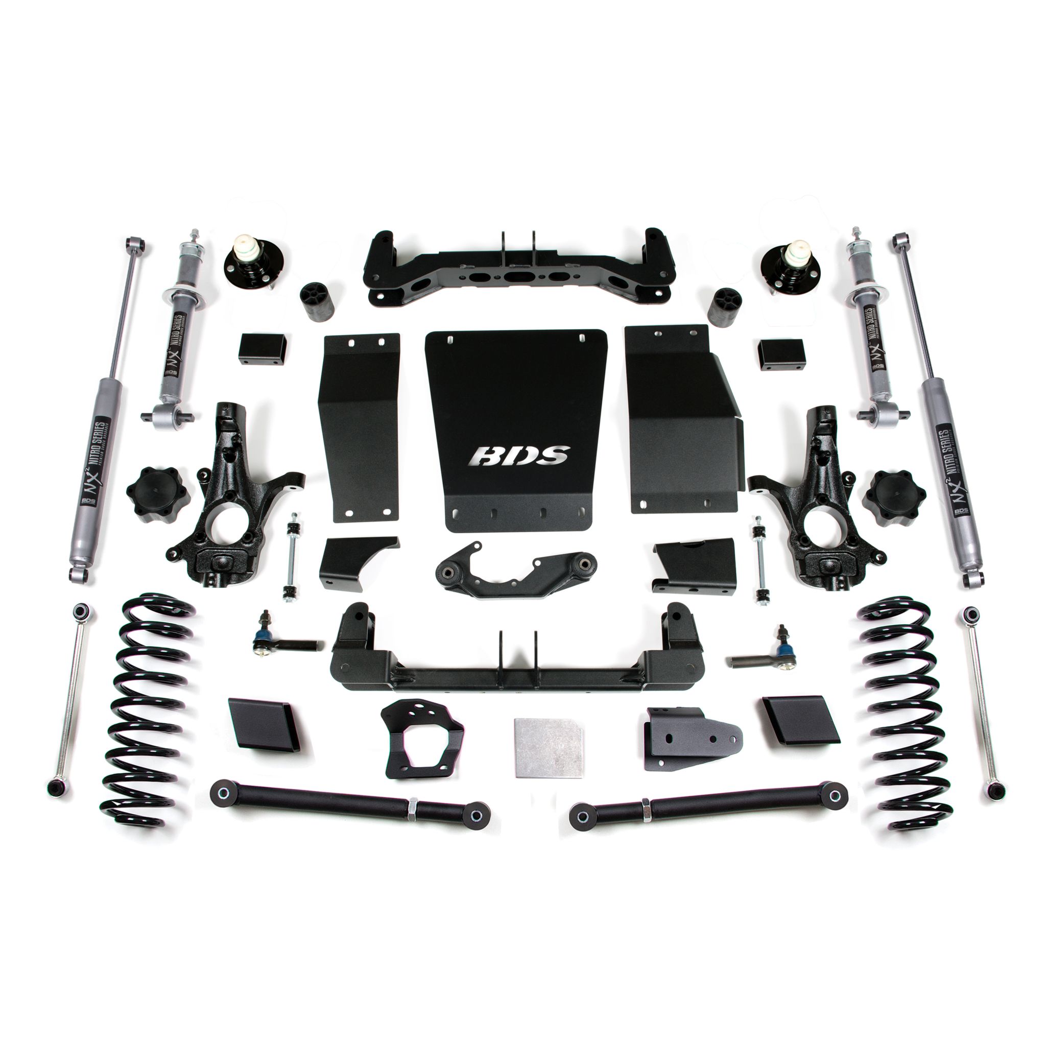 <p>In the rear BDS offers new Pro-Ride coil springs for on-road ride quality as well as serious off road performance, anti-sway bar links, track bar relocation system, and adjustable upper control arms allowing you to properly adjust pinion angle. Also for the rear are precision tuned NX2 Nitro or premium FOX 2.0 Performance Series shocks.</p>