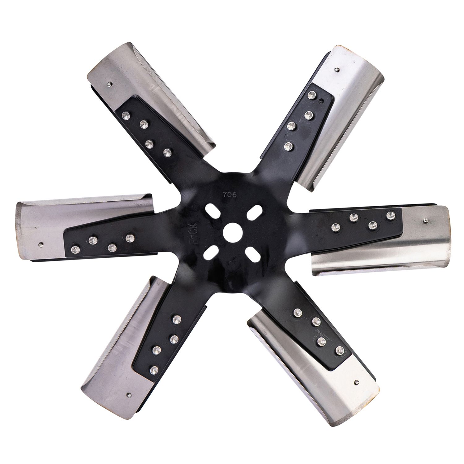 Rated up to 10,000 rpm, this 15" diameter heavy duty standard rotation fan features thick black steel hubs and 6 stainless reinforced blades with a large surface area that improve performance and fuel economy.