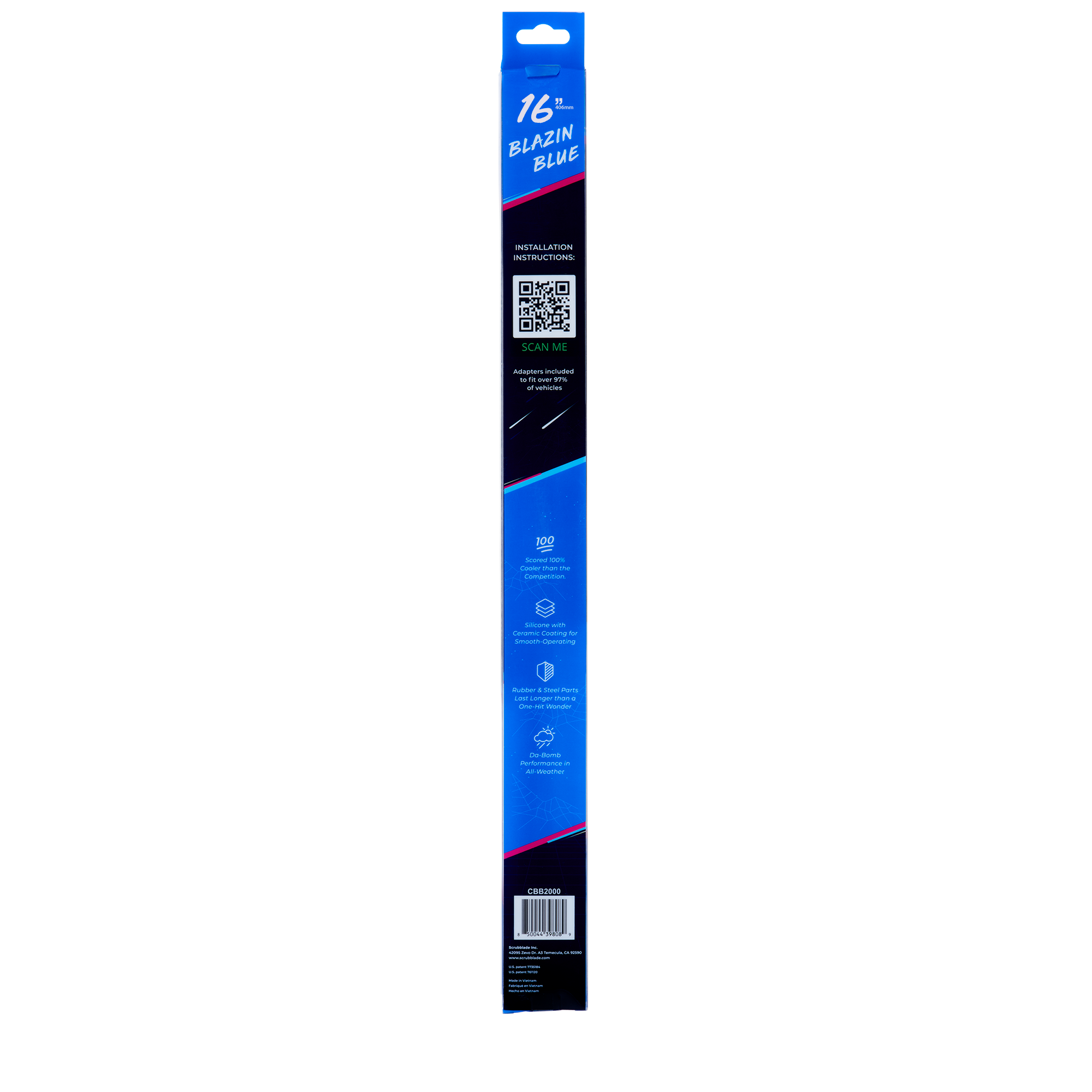 Scoring 100% cooler than the competition, Shadeblade is an ultra premium wiper blade, with a slick black rubber covered frame for Da-Bomb performance in all weather. A low profile to prevent wind lift and ceramic coated silicone blades in your choice of six colors for a quiet, smooth wipe. Innovative dual-action cleaning system to scrub + clear rain, bugs and road debris. Easy no tool installation with included adapters (4) to fit over 97% of all vehicles on and off the road. Shade Blade is the coolest patented wiper on the block! Made from a premium Ceramic coated Silicone, offered in multiple colors and branded with a Scrubblade logo for a true aftermarket vibe.