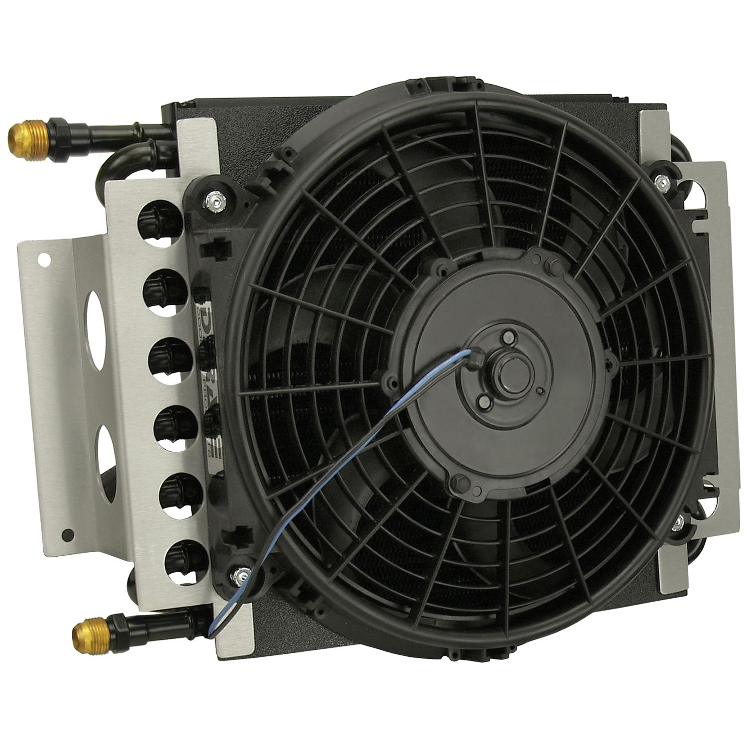 With it's own air supply, the popular Electra-Cool remote transmission cooler can literally be mounted almost anywhere, making it a popular addition for performance compacts, hot rods, muscle cars and trucks. An efficient 16-pass tube and fin cooler coupled with a Tornado fan and aluminum brackets, this kit comes with a complete installation kit to install easily on all vehicles with 1/2" transmission cooler lines. Also included is an 180°F in-line thermostat for activating the electric fan. This is a durable, trouble-free way to add years to the life of your transmission, and perfect for heavy duty towing and hauling.
