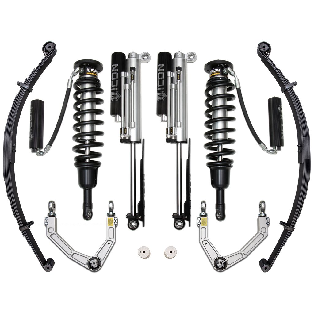 To compliment ICON's rear 3.0 Series bypass shocks, ICON engineers decided to scrap the OE rear leaf springs and develop a replacement that addressed a couple issues found in the R&D process. The result is a user-adjustable, multi-rate leaf pack that offers a major performance gain for almost every Raptor setup imaginable. To increase the ride quality of the truck and gain additional droop travel, the spring rate was designed to be slightly lighter than factory, which was found to be on the stiff side for smaller, choppier terrain. While most Raptor owners will embrace the improved ride quality this provides, there are those who have outfitted their trucks with a significant amount of weight and require more load carrying capability. Understanding this, ICON engineers designed the leaf pack with an additional leaf (included with kit) that can be exchanged or added to the pack, yielding an additional 20% or 40% spring rate that will work well for heavier vehicles. The resulting spring pack produces a ride that is much smoother in all terrain, significantly reduces axle wrap, while also adding durability and strength.