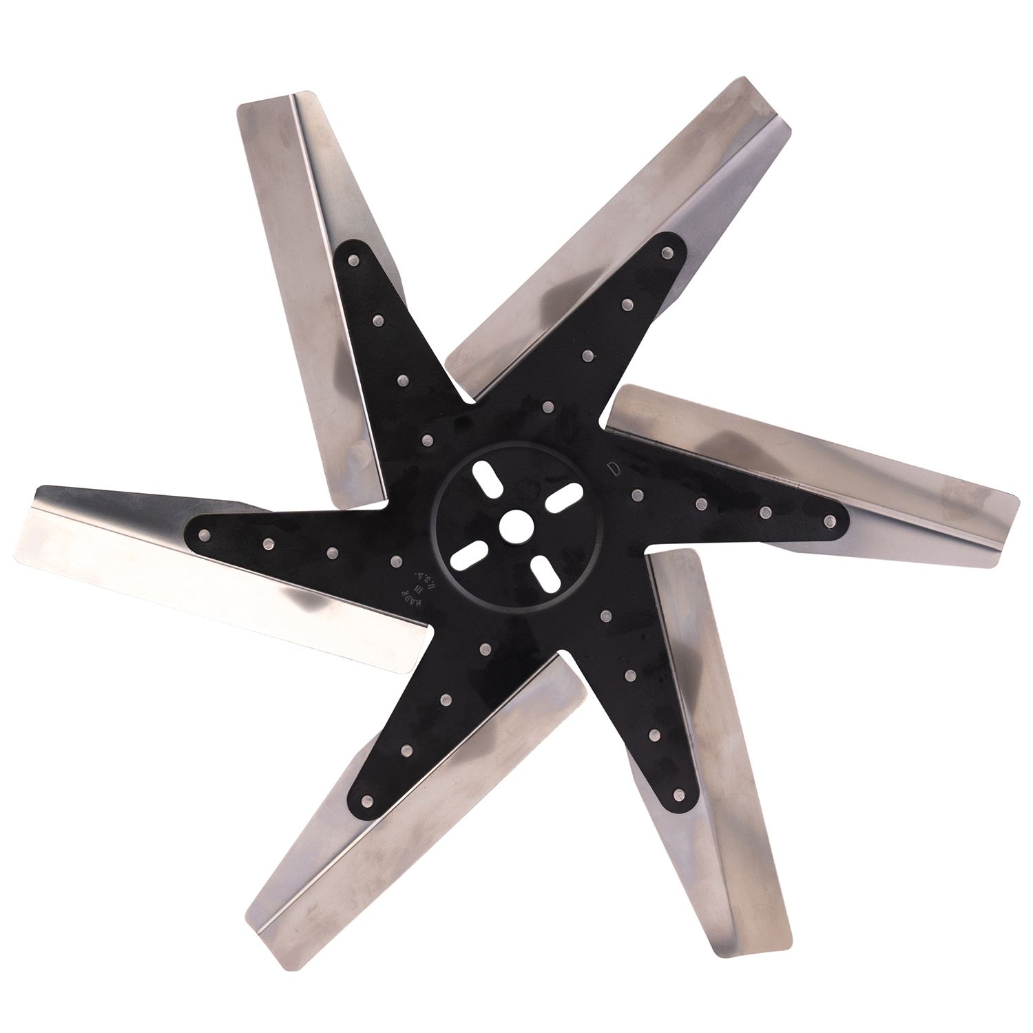 Our 18" high performance, reverse rotation flex fan features 6 stainless steel blades and a black powder coated hub and is rated for engine speeds up to 8,000 rpm. A perfect for limited space applications.