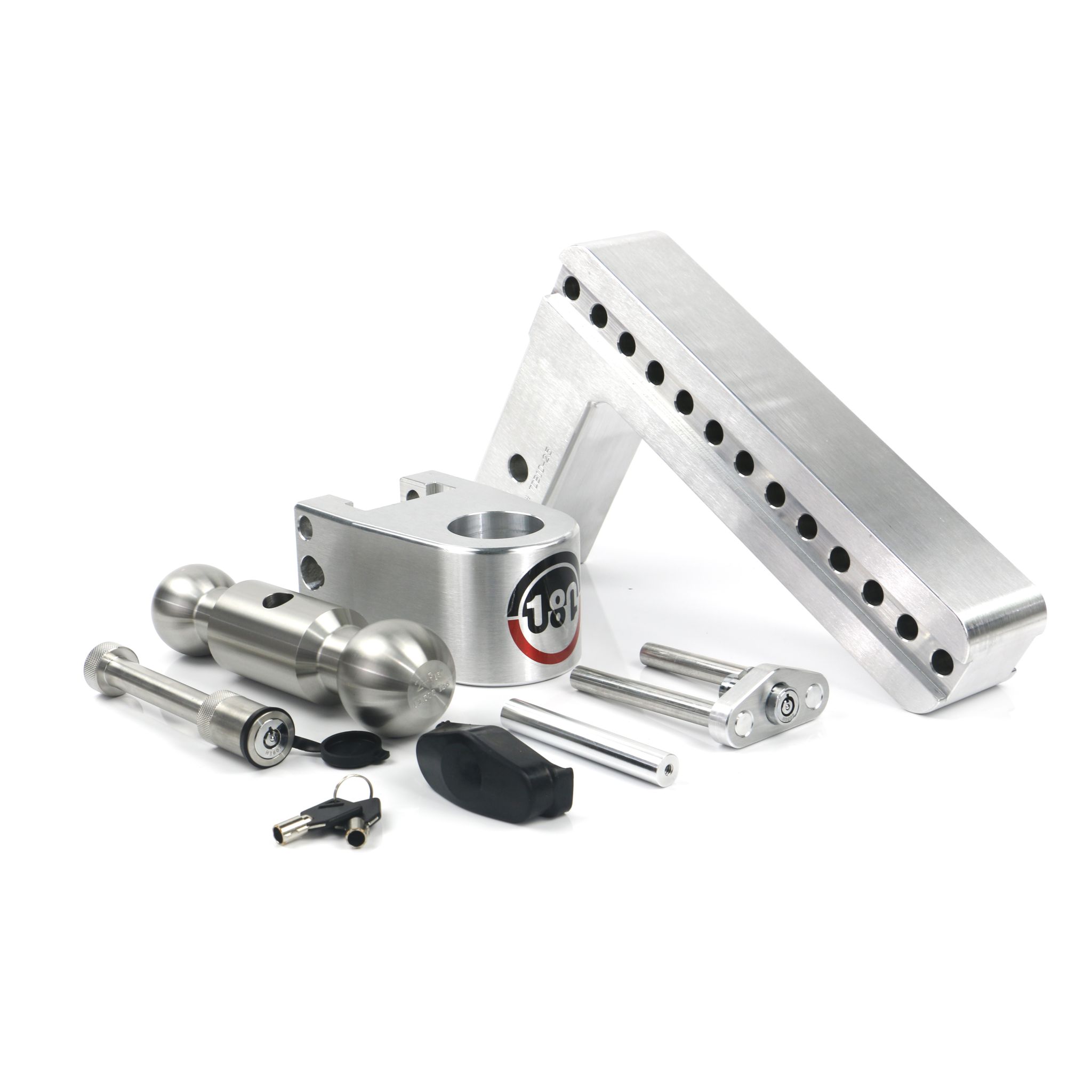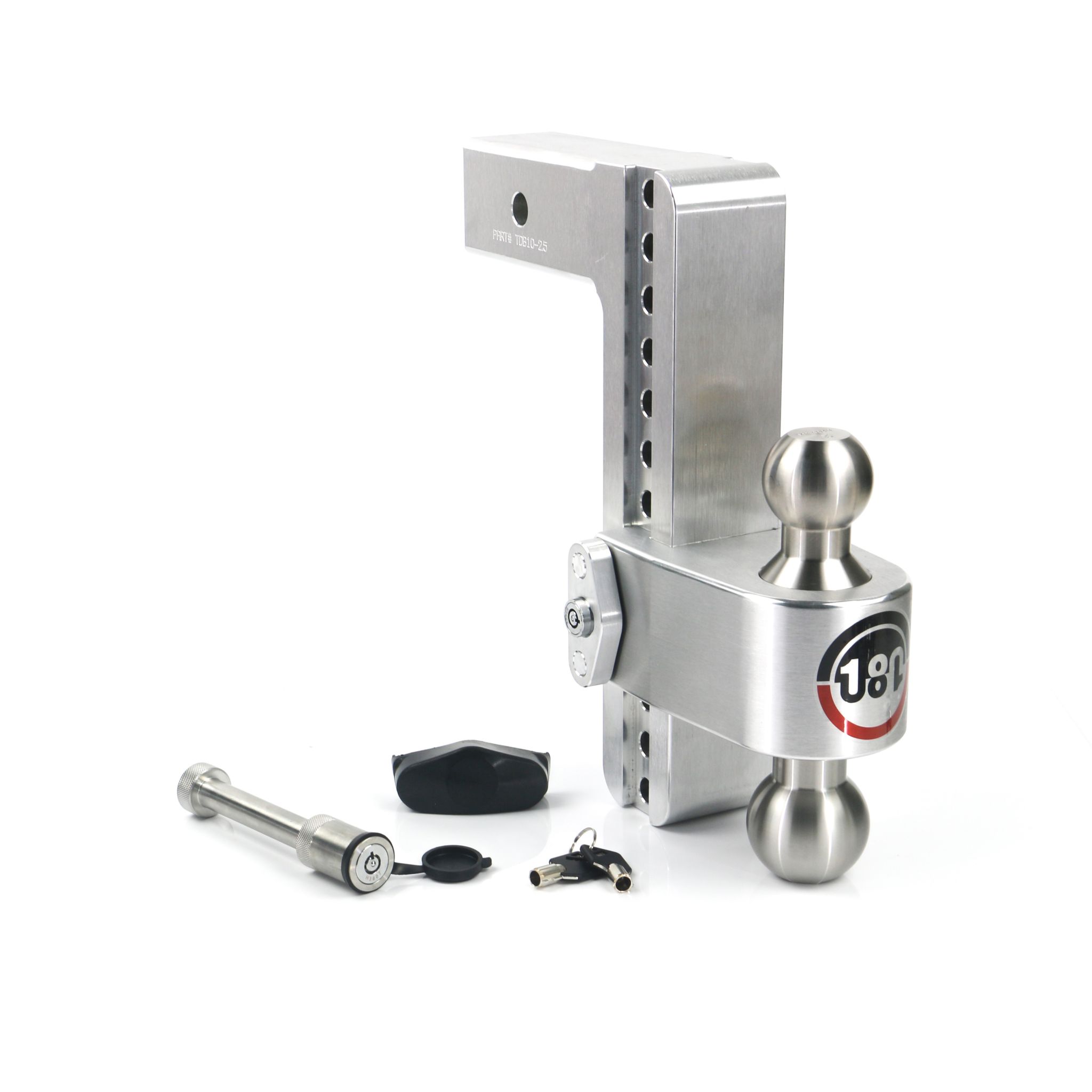 180 Hitch – Adjustable Drop Hitch w/ 10" Drop & 2.5" Shank+ Stainless Steel Combo Balls (2" & 2 5/16") – 18,500 lbs GTW with Keyed-Alike Hitch Locking Pin