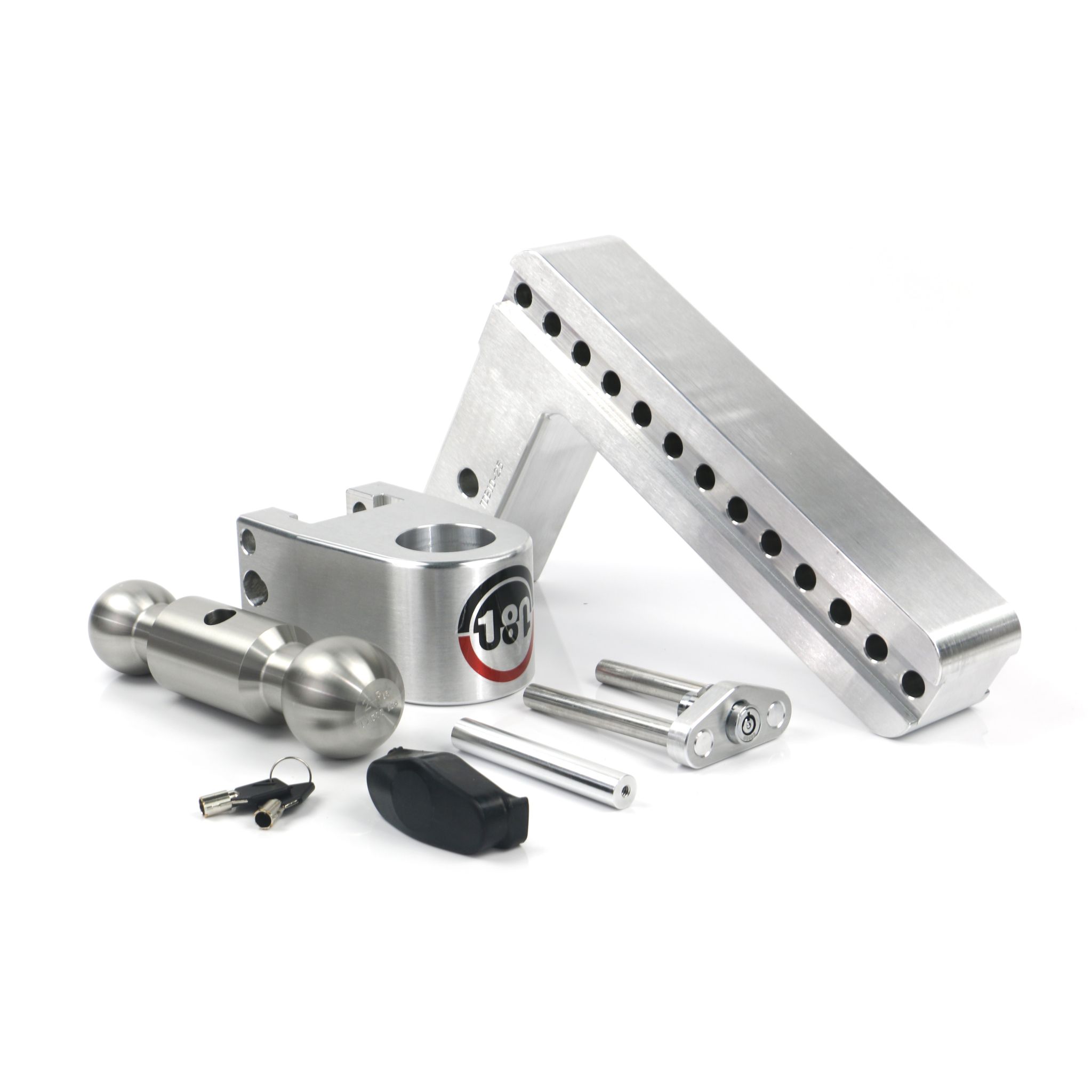 180 Hitch – Adjustable Drop Hitch w/ 10" Drop & 2.5" Shank + Stainless Steel Combo Balls (2" & 2 5/16") – 18,500 lbs GTW
