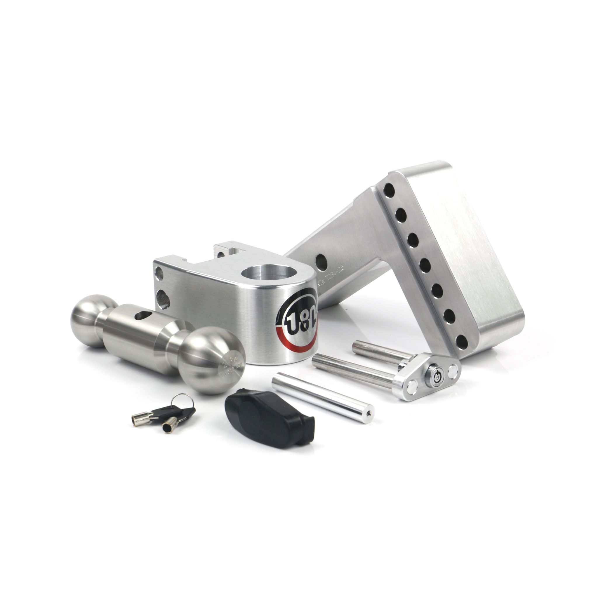 180 Hitch – Adjustable Drop Hitch w/ 4" Drop & 2.5" Shank + Stainless Steel Combo Balls (2" & 2 5/16") – 18,500 lbs GTW