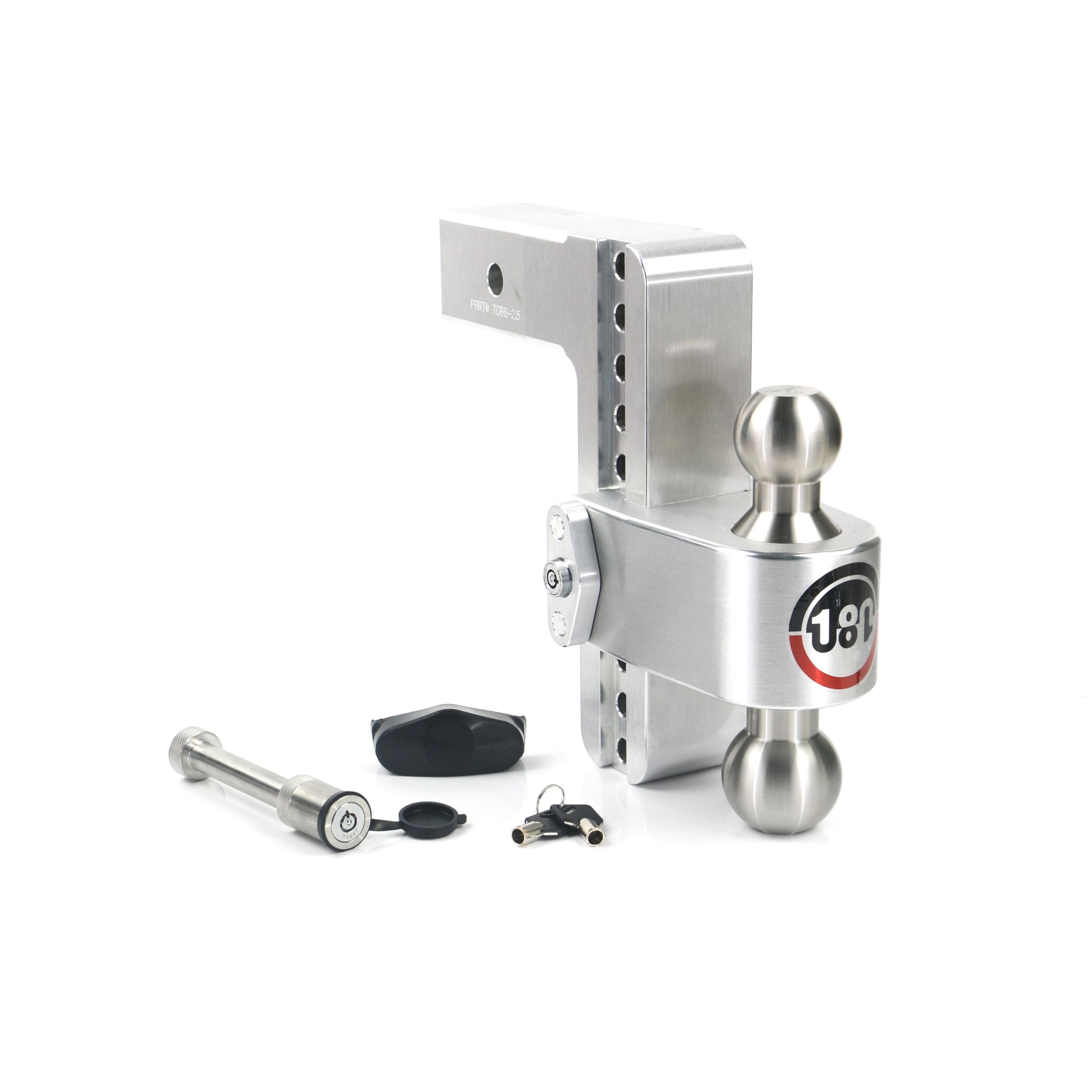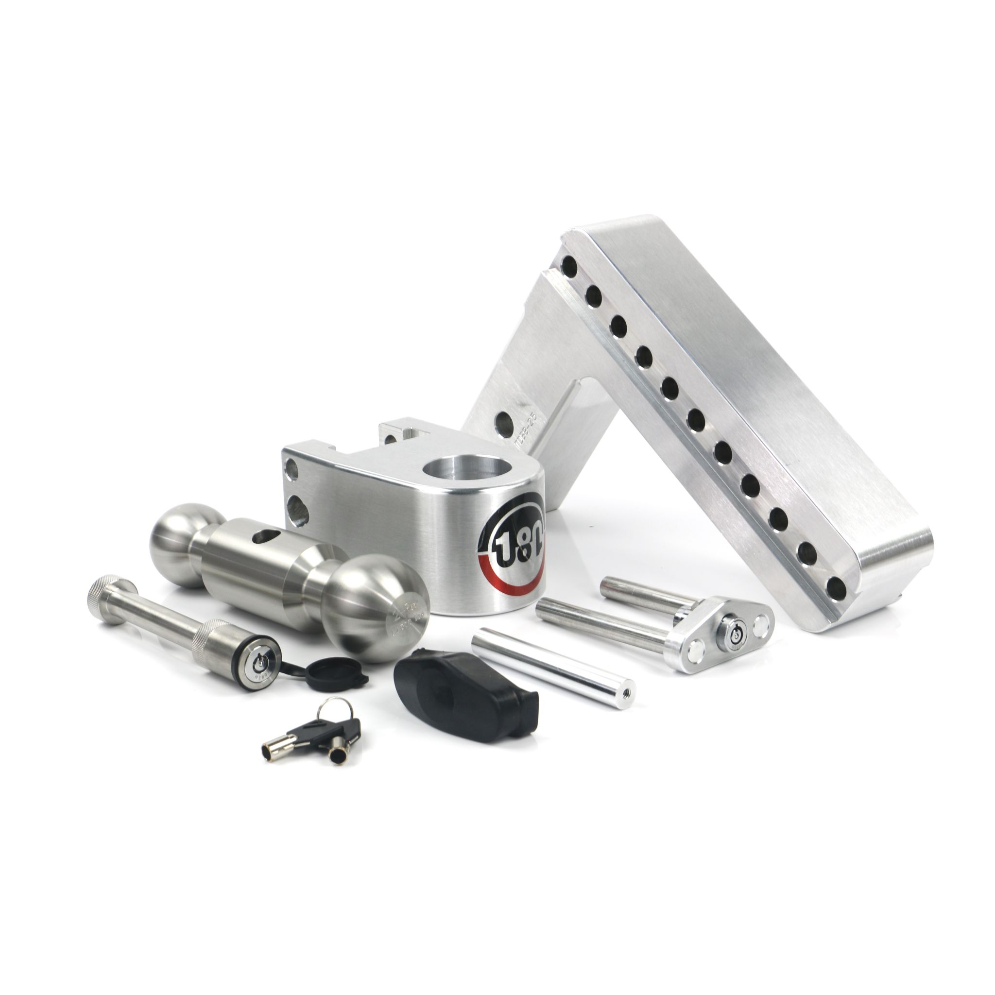 180 Hitch – Adjustable Drop Hitch w/ 8" Drop & 2.5" Shank + Stainless Steel Combo Balls (2" & 2 5/16") – 18,500 lbs GTW with Keyed-Alike Hitch Locking Pin