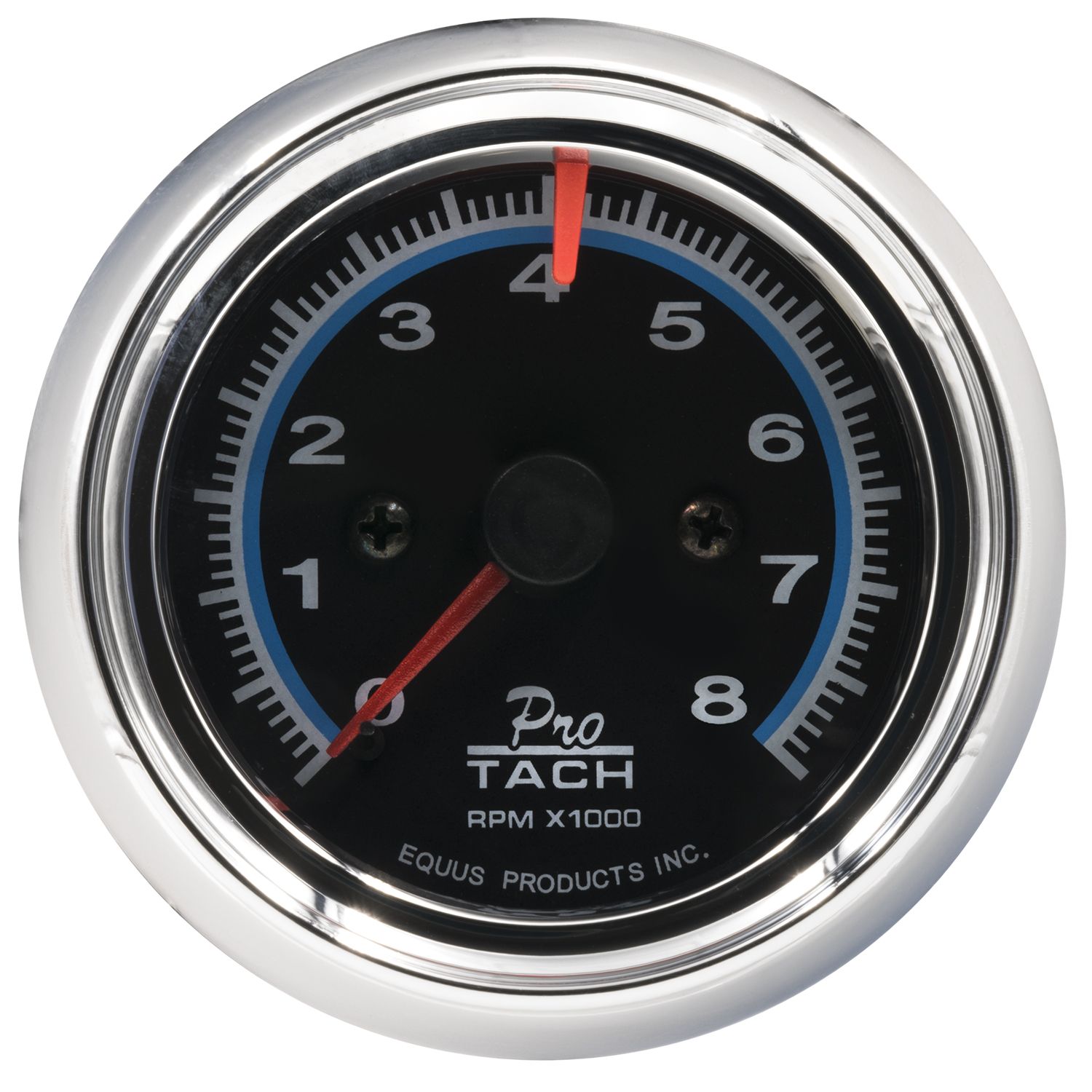 Equus 6000 Series, Gauge, Tachometer, 2 1/2" , 8000 RPM, Black Dial Chrome Case