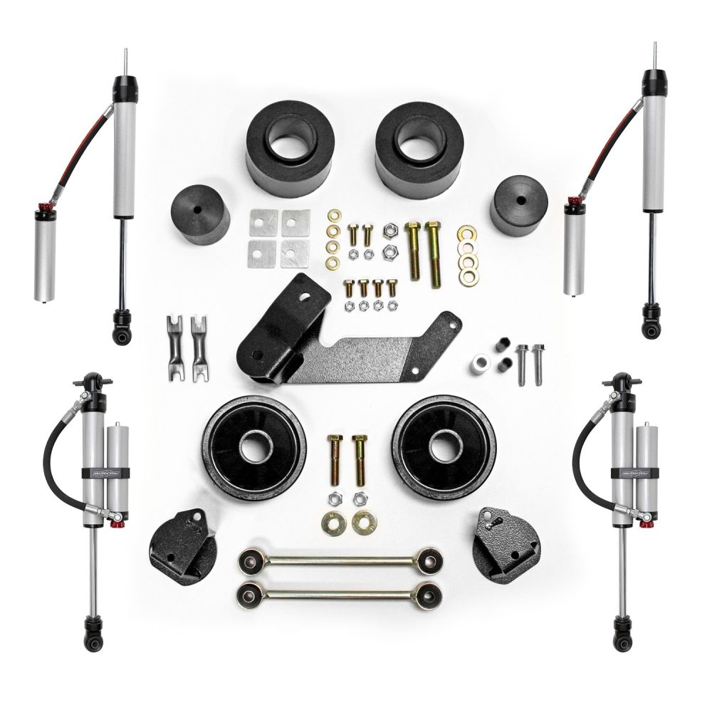 The 2.5” Budget Boost Is A Slightly More Extensive Low Priced Lift Kit That Not Only Lifts Your JK Up Enough To Run 35” Tires, But Acts As A Leveling Kit To Do Away With The Factory Rake. With A 2.5” Coil Spacer In The Front And A 1-3/4” Coil Spacer In The Rear, This Package Levels Out Your JKs Suspension While Increasing Ground Clearance And Off Road Performance. This Kit Also Includes Brakeline, Bumpstop And Sway Bar Link Extensions, As Well As A New Rear Track Bar Bracket. With Options To Include Multiple Levels Of Rubicon Express Precision Valved Shocks Or Shock Extensions That Allow For The Use Of Factory Shocks, This Suspensions System Has A Variety Of Price Points That Help You Boost Your JKs Ride And Performance At Affordable Prices.