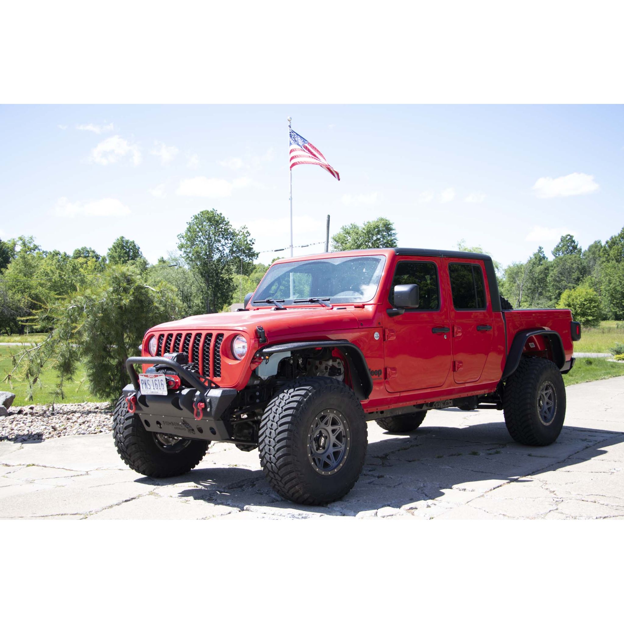 Fits 2018 to Current JL Wrangler, Rubicon and Unlimited Fits 2020 to Current JT Gladiator 2 and 4-Door Models. Black textured powder coat. Made from Steel. JL Rear set will only fit JL Wrangler.