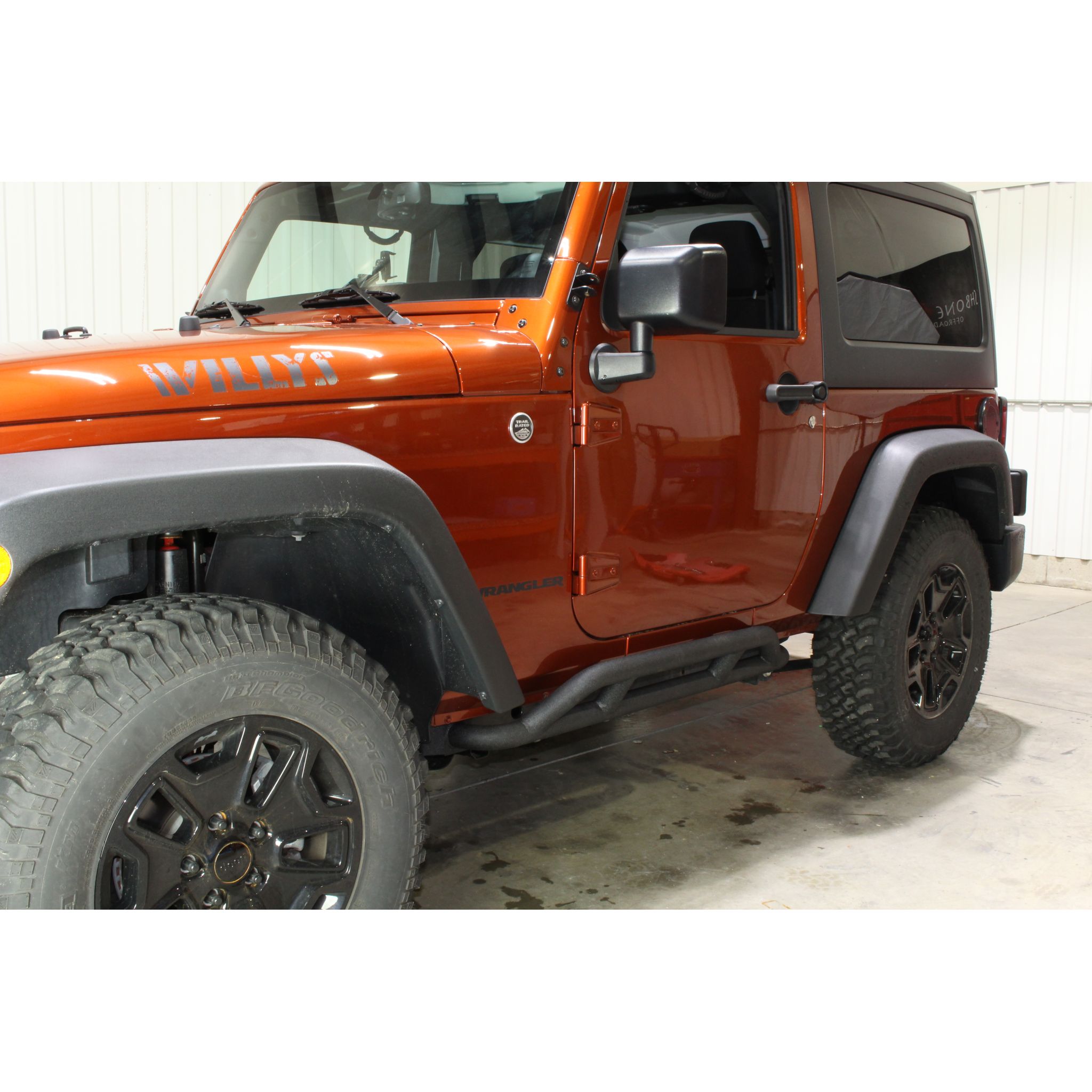 Elevate protection with Fishbone Offroad Rocker Guards for 2007-2018 JK Wrangler (2-Door Models). Sold as a pair, no-drill installation.