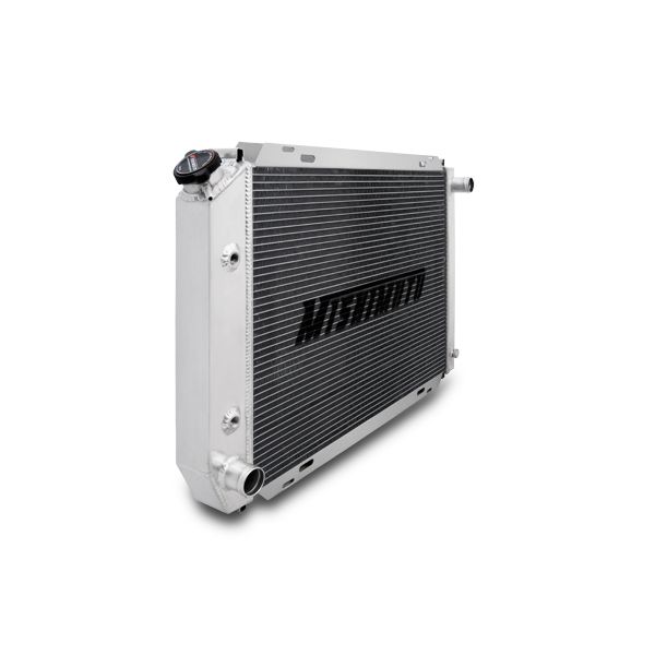 The Fox-Body Mustang is an ideal candidate for both daily driving and tearing up the drag strip. With such a large aftermarket, increasing horsepower is easy and inexpensive. More power commonly results in higher temperatures, necessitating an effective and reliable cooling system. Ditch your aged and inefficient stock radiator for the Mishimoto Ford Mustang all aluminum radiator. This radiator features a 100-percent brazed aluminum two-row core with precision stamped end tanks for structural rigidity and improved durability. This performance radiator includes a high-pressure 1.3 bar radiator cap that effectively raises the boiling point of coolant to create a safer and more efficient system, perfect for your cammed or blown small block. The Mishimoto Ford Mustang Performance Aluminum Radiator features a core thickness of 2.125 inches and a substantial increase in coolant capacity. For further protection, this radiator includes a Mishimoto magnetic drain plug to collect metal fragments circulating in the cooling system. This drain plug utilizes a robust dowty seal for exceptional protection against seepage or leaks. Thanks to a brushed finish, the Mishimoto performance aluminum radiator is an ideal upgrade not only in performance, but also in style. The Mishimoto Fox-Body aluminum radiator is a direct-fit unit, simplifying installation and guaranteeing perfect fitment for 1979-1993 models. Keep your Mustang on the road and out of the garage with the Mishimoto performance aluminum radiator. As with all our products, this radiator includes the Mishimoto Lifetime Warranty, ensuring superior product quality and craftsmanship.