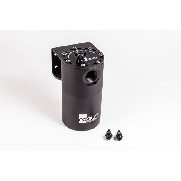 Universal air/oil separator. Designed to vent back into engine induction system for a closed system. Increased engine performance from cleaner inlet air. Prevents oil buildup. Lowers hydrocarbon emissions