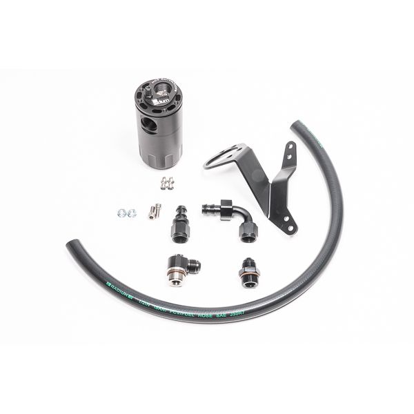 Single catch can kit for the 2011-14 Ford Mustang GT. Mounts to engine and interfaces with crankcase vent line. Includes Radium's Fluid Lock catch can (patent pending).