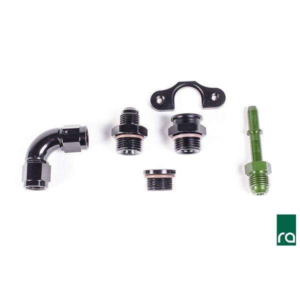 Permits a bolt-on plug and play replacement for the OEM system when using the Radium Engineering fuel rail for the MX-5/Miata. OEM fuel pressure regulator is retained. Feed and return hoses are replaced.