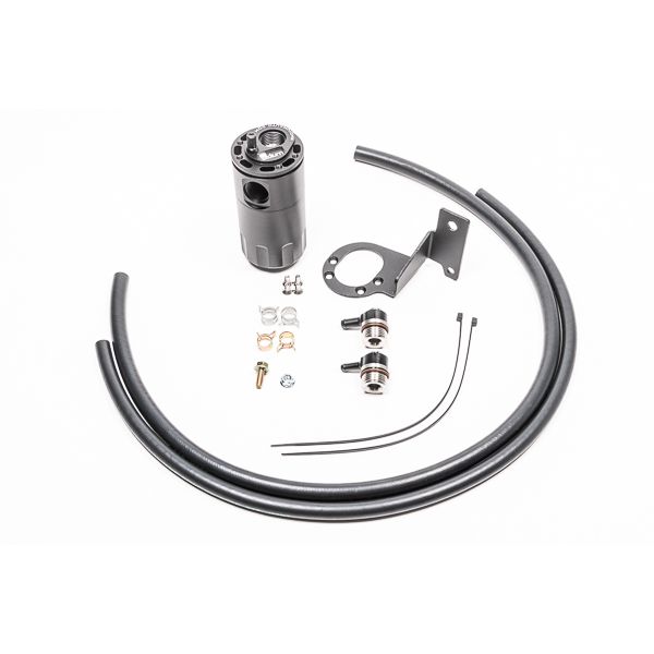 Catch can kit for the GR Supra that interfaces with the PCV vent line. Includes Radium's Fluid Lock catch can (patent pending).