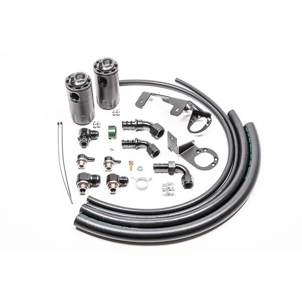 Includes both CCV and PCV catch can kits. All fittings, adapters, hoses and brackets are included. No permanent modification to the vehicle is required. Includes Radium's Fluid Lock catch cans (patent pending).