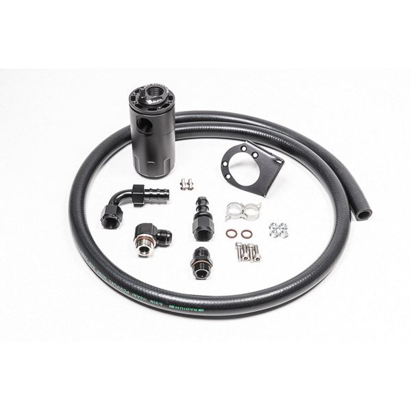 Single oil catch can kit for the 2022+ Subaru WRX. Interfaces with crankcase vent hose at front of engine. Includes all hoses, fittings, and brackets/hardware for an easy bolt-in installation. Includes Radium's Fluid Lock catch can (patent pending).