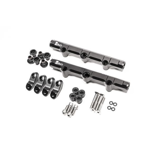 CNC machined fuel rails for the Subaru 6-cylinder EZ30 engine (phase 1). Direct bolt-on fitment. Compatible with OEM or aftermarket fuel injectors. 8AN ORB female ports (adapter fittings sold separately).