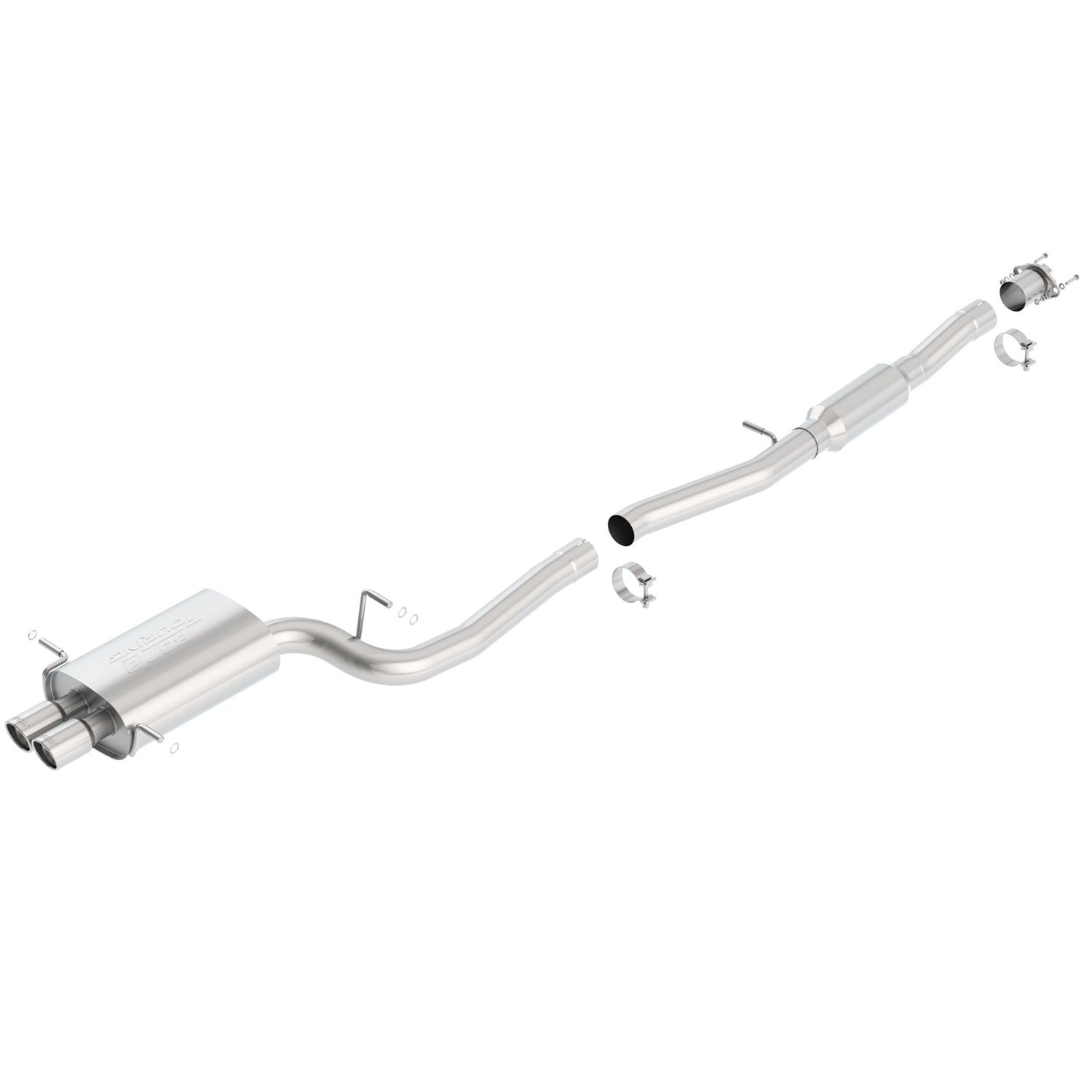 System features polished T-304 stainless steel tips. Borla(r) Cat-Back(tm) & Axle-Back exhaust systems feature patented straight-through and multi-core technology designed to unleash hidden horsepower. Increased exhaust velocity adds power, driving excitement, fuel economy, and the distinctive Borla(r) Sound of Power respected by motoring enthusiasts everywhere. Each system is built from premium T-304 stainless steel, superior to T-400 series knockoffs (such as 409), to give you the absolute best in performance and durability. Ultra-smooth mandrel bends ensure maximum flow & power, and precision computer-controlled CNC manufacturing ensures an accurate fit. Best of all, Borla(r) stands behind every system with a Million-Mile Warranty. Just what you'd expect from the world's most experienced (and most winning) exhaust brand.