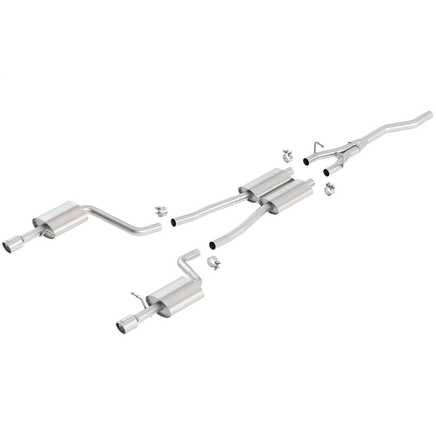 System features polished T-304 stainless steel tips. Borla(r) Cat-Back(tm) & Axle-Back exhaust systems feature patented straight-through and multi-core technology designed to unleash hidden horsepower. Increased exhaust velocity adds power, driving excitement, fuel economy, and the distinctive Borla(r) Sound of Power respected by motoring enthusiasts everywhere. Each system is built from premium T-304 stainless steel, superior to T-400 series knockoffs (such as 409), to give you the absolute best in performance and durability. Ultra-smooth mandrel bends ensure maximum flow & power, and precision computer-controlled CNC manufacturing ensures an accurate fit. Best of all, Borla(r) stands behind every system with a Million-Mile Warranty. Just what you'd expect from the world's most experienced (and most winning) exhaust brand.
