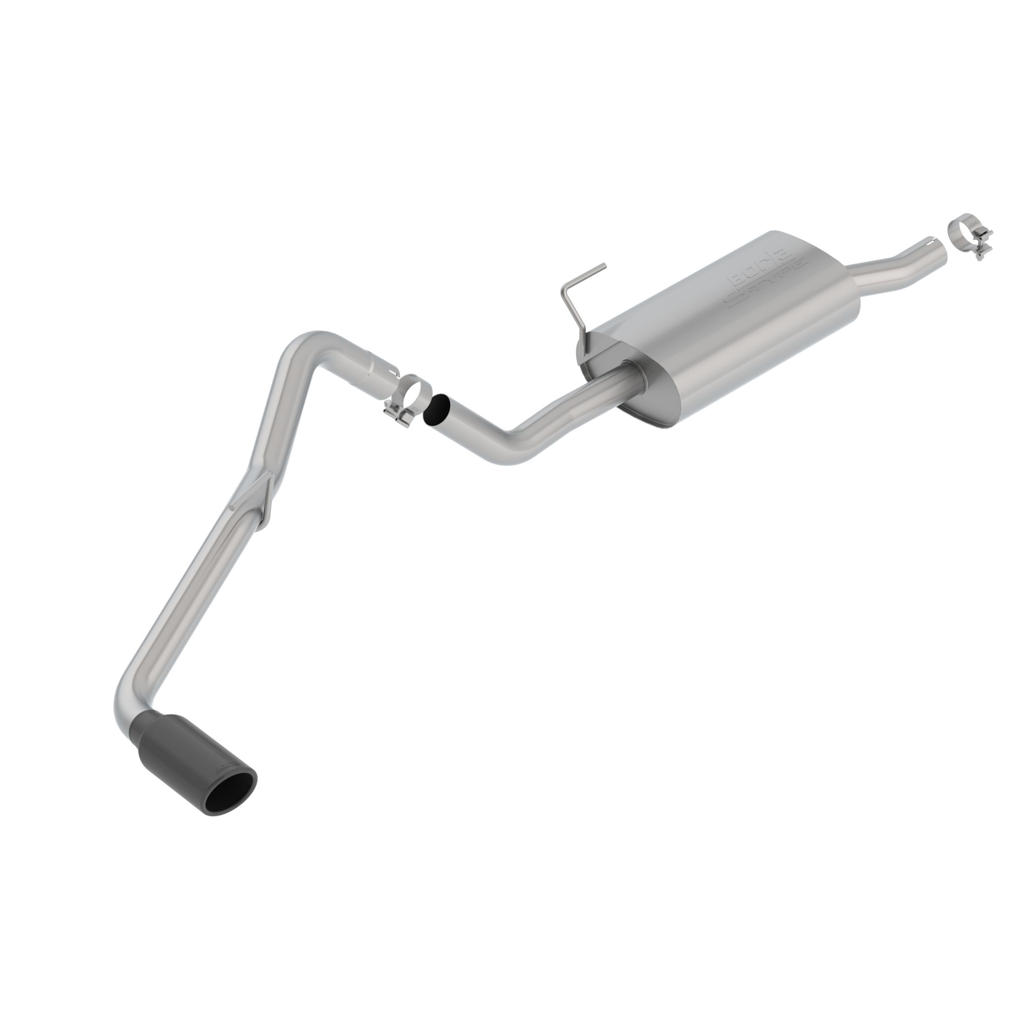 The Borla(r) team has developed an awesome sounding exhaust system for the 2005-2019 Nissan Frontier. The Cat-Back(tm) system comes in the S-Type sound level and is specifically tuned for performance and sound on the Frontier's 4.0L V6 engine. Much like the stock exhaust, the Borla(r) system features a passenger-side single exit. Its cut-and-clamp installation ensures that the system retains the factory catalytic converters and allows the system to fit both wheelbases available in the Frontier. This particular system (140802BC) comes with a black chrome on T-304 stainless steel tip, but is also available in bright chrome on T-304 stainless steel (140802). Using Borla(r) Stainless Steel Polish p# 21461 is NOT recommended with these black chrome tips. We suggest cleaning the tips with hot water and a microfiber cloth. As one would expect, the system is drone-free and constructed using T-304 stainless steel for increased durability. Bolt on a Borla(r) and hear the Frontier roar! Borla(r) exhaust systems are covered under our Million-Mile warranty with the following exceptions. Borla(r) will warranty black coatings, tip finishes, and carbon fiber parts for one year.