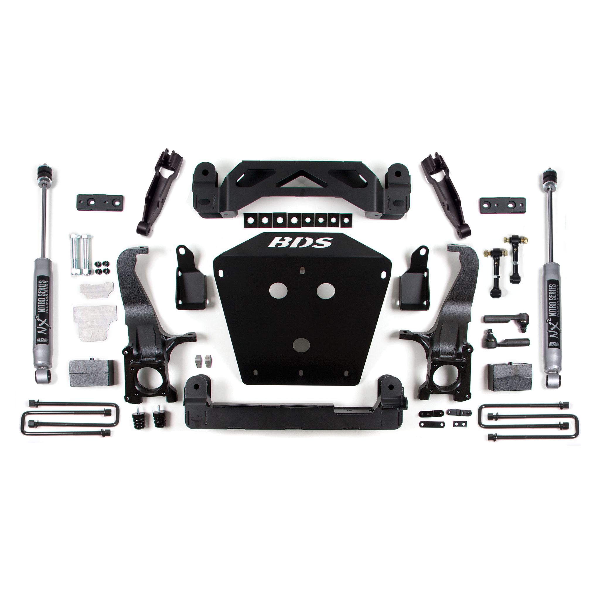 <p>This kit takes advantage of BDS's tried and true high-clearance design for improved ground clearance, strength, and offroad protection while correcting suspension and steering geometry for great on-road handling characteristics. Up front, the kit utilizes a lower strut extension, high-arched 1/4-inch thick steel crossmembers along with a multipiece differential relocation brackets and heavy duty skid plates built for offroad protection. Steering geometry is corrected at the new taller ride height with CNC-machined ductile iron steering knuckles utilizing replacement tie rod ends allowing for ESC system compatibility. These combined with the provided sway bar drops, bump stop extensions, brake line brackets, supplied hardware and more provide a comprehensive front suspension lift ready for whatever you throw at it.</p>