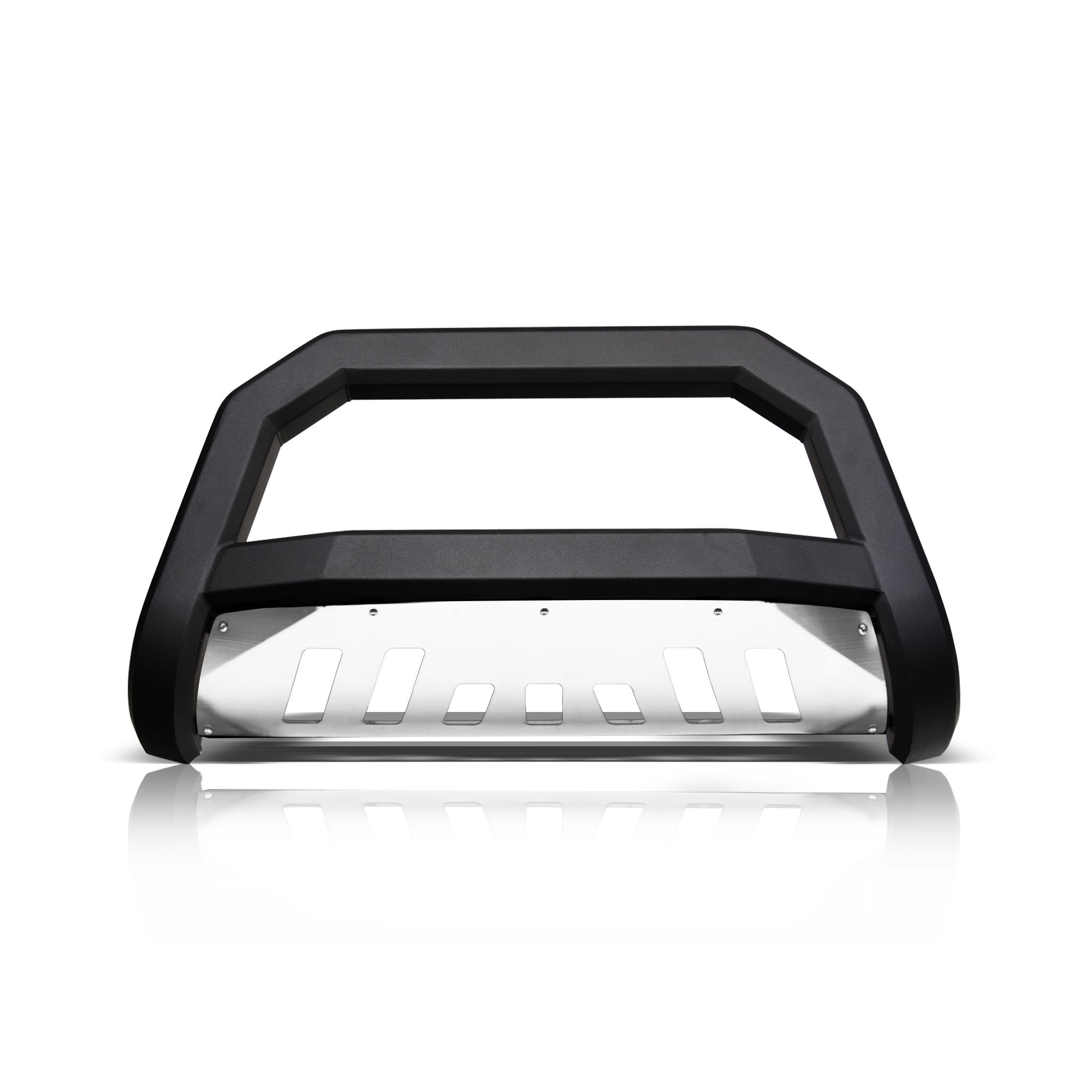 Armordillo AR Series Bull Bar, If you're looking to protect the front end of your rig against the elements and impact of minor collisions without sacrificing the look of your new stylish front grille, the AR series bull bar with its aggressive angular design is just the thing you need. Unlike regular tubular bull bars, Armordillo AR series bull bars will not hide your front grille or a large portion of your front bumper, while keeping the front-end protection at a high level. Plus, the mesh styled skid plate doesn't restrict airflow to the radiator and engine preventing its overheating. Arm your off-road beast with Armordillo, an industry-leading manufacturer of top-of-the-line truck accessories and parts. Years of ingenious engineering and passion for the world's toughest trucks has been poured out into providing hardcore off-road products designed to turn your beefy companion into the embodiment of sleekness, edginess, and aggression. Armordillo offers bull bars, step bars, fender flares, truck bed rails, trailer hitches and some of its unique products. Pre-Runner bumper guards, AR drop steps, lockers, and bull bars. You can count on Armordillo to bring you impeccably strong and durable parts combining brutal appeal with high-end elegance. The brand's bull bars, grilles, fender flares and side step bars are a sure way to instantly give your off-road warrior a more sharp, mean look along with unmatched comfort and protection against the rage of the trails. So, if you are looking to improve your vehicle's stance and fortify its defenses to own the dust with confidence, Armordillo is the answer to all your needs.