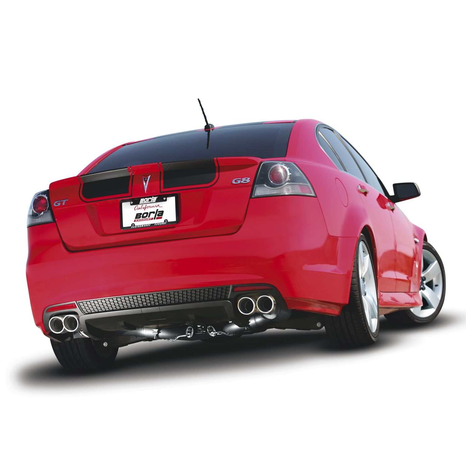 Gone but not forgotten, Borla(r) designed this Cat-Back(tm) specifically for your Pontiac G8 GT or Pontiac G8 GXP. Borla(r) System features a merge X-Pipe for increased performance and improved sound, and polished T-304 stainless steel tips for sharp appearance. Borla(r) Cat-Back(tm) & Axle-Back exhaust systems feature patented straight-through and multi-core technology to unleash hidden horsepower. Increased exhaust velocity adds power, driving excitement, fuel economy, and the distinctive Borla(r) Sound of Power respected by motoring enthusiasts everywhere. Each system is built from premium T-304 stainless steel, superior to T-400 series knockoffs (such as 409), to give you the absolute best in performance and durability. Ultra-smooth mandrel bends ensure maximum flow & power, and precision computer-controlled CNC manufacturing ensures an accurate fit. Best of all, Borla(r) stands behind every system with a Million-Mile Warranty. Just what you'd expect from the world's most experienced (and most winning) exhaust brand.