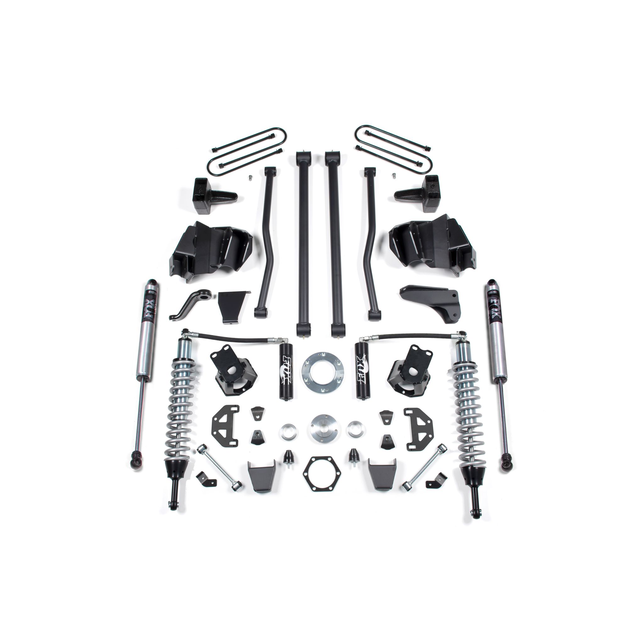 <p>Up front the lift kit includes FOX 2.5 Coil-Over shocks, all four control arms plus mounting bracket, forged drop pitman arm and track bar bracket for steering correction, bump stops, and sway bar links. In the rear this kit utilizes heavy duty cast steel blocks, longer u-bolts, and a matching set of FOX 2.0 Performance shocks.</p>